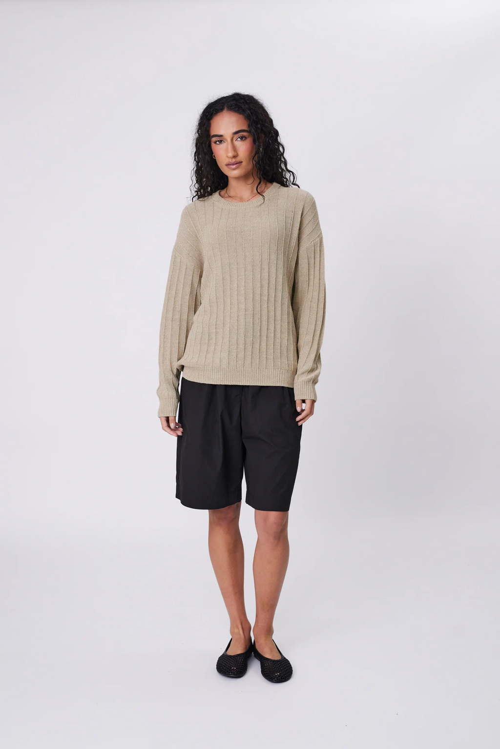 Meet the Evergreen Knit Crew, a relaxed crew knit in our best-selling silhouette. The premium cotton and linen yarn offers breathability and structure, knitted in a unique reversed rib design for added texture.