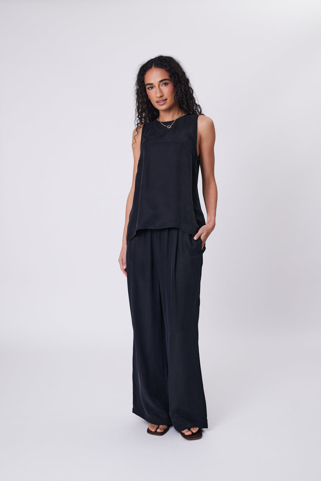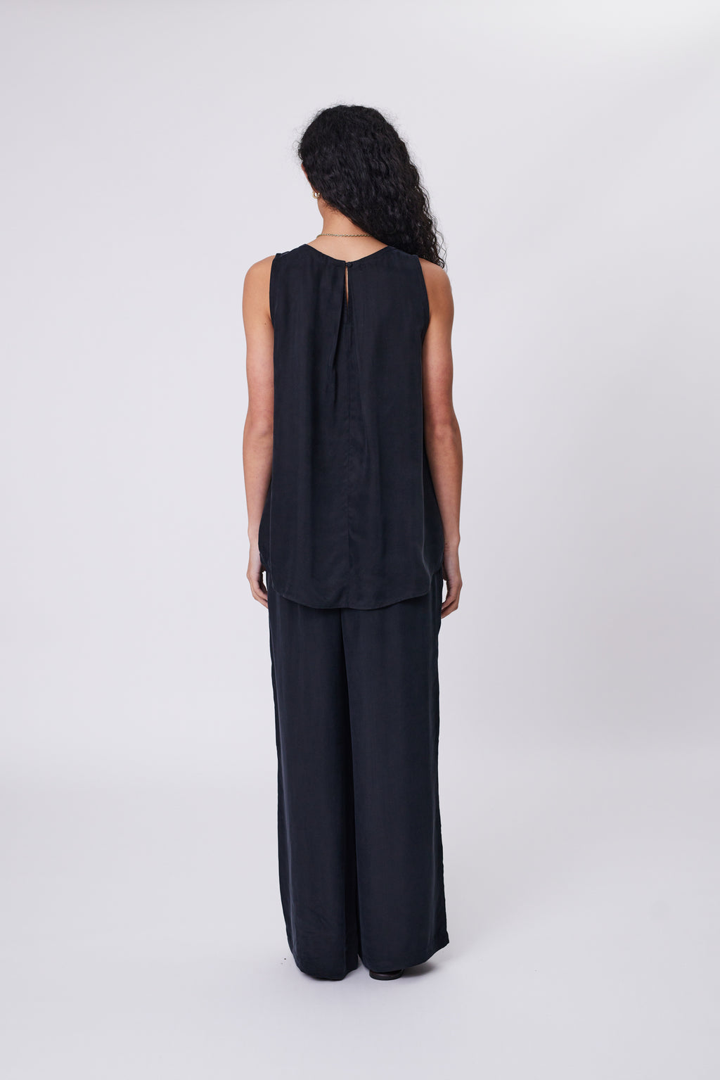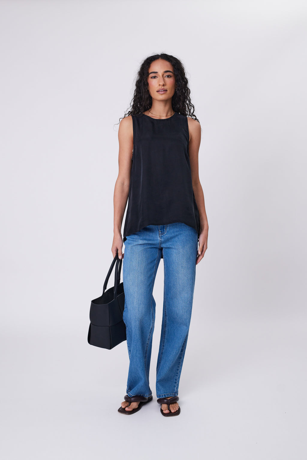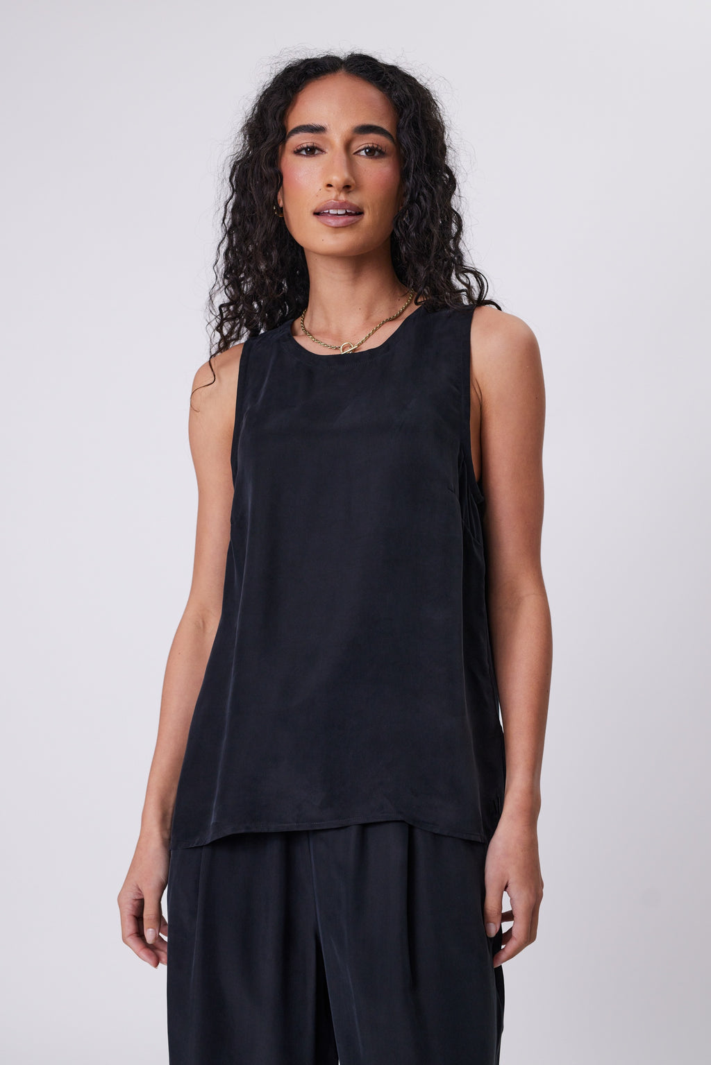Relaxed yet elevated, the Reverb Tank is a polished take on the classic tank. Crafted from a luxurious cupro and viscose blend that offers a silky-soft hand-feel and effortless drape, while keeping you cool and comfortable in the warmer months. Features a classic crew neckline and a curved high-low hem, and is finished with a back pleat detail for extra drape. For easy outfitting, pair it back with the Curve Barrel Jean and a pair of flats, or wear it with the matching Reverb Pant for a look that’s comfortable yet put-together.