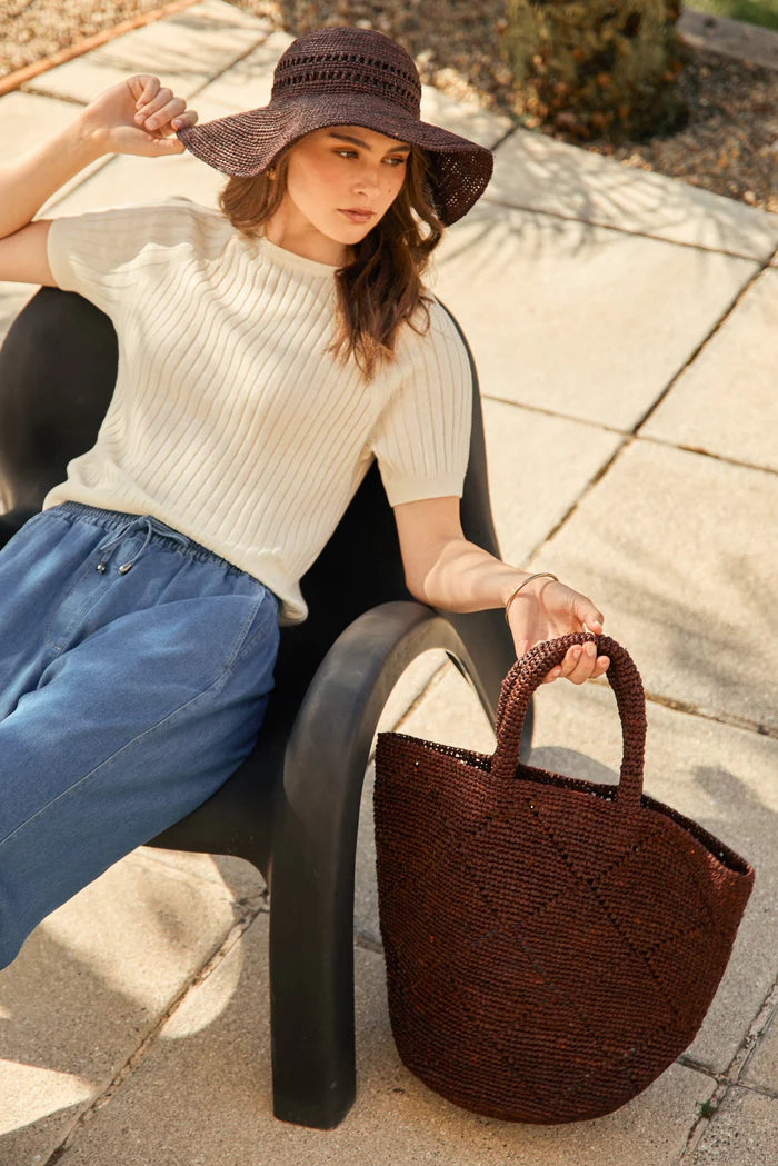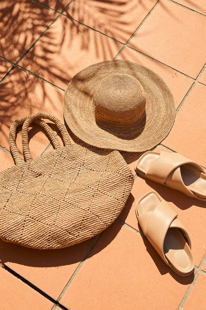 Due to the natural fibres used in the crafting of artisanal raffia hats and bags, slight colour variations are to be expected. As raffia is a natural fibre, each piece may have unique characteristics. These variations add to the charm and individuality of each handmade piece, making them one-of-a-kind.