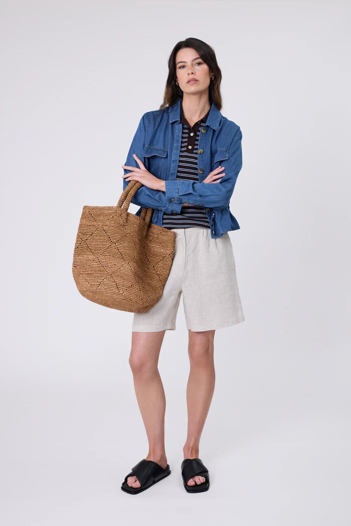 Meet the Santorini Bucket Bag, where spacious design meets elevated summer style. Crafted in Madagascar, this 100% Raffia bag is handwoven with diamond open-weave detailing. Finished with rounded handles and a large, circular base, it’s designed to fit all your summer essentials.