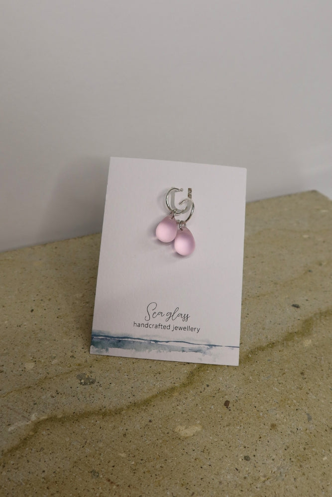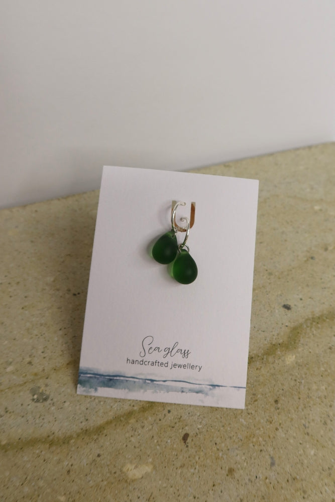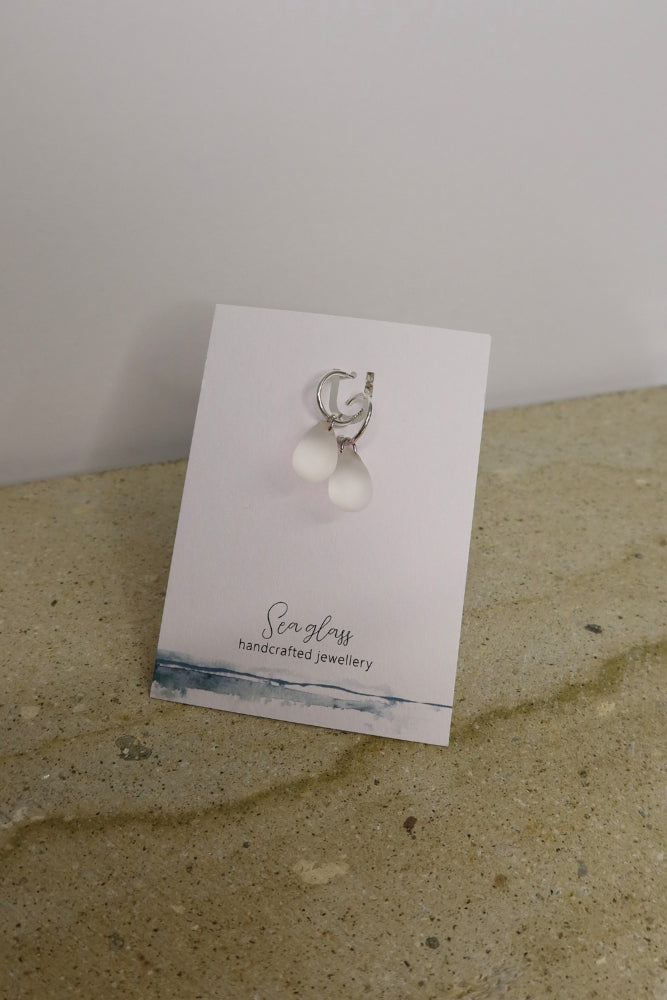 Undercurrent Seaglass Droplet Hoop With Stud Earrings - Silver