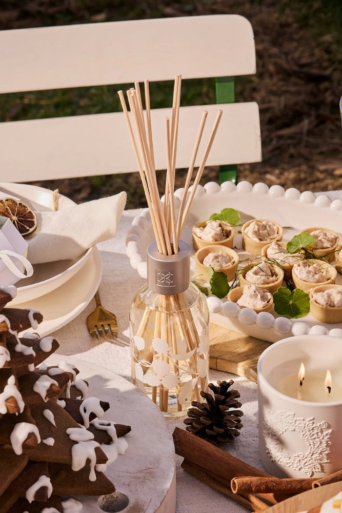 Remove the cap and replace with the diffuser collar. Add reeds and turn regularly to refresh fragrance.