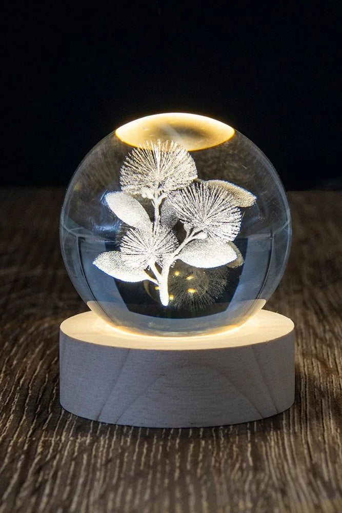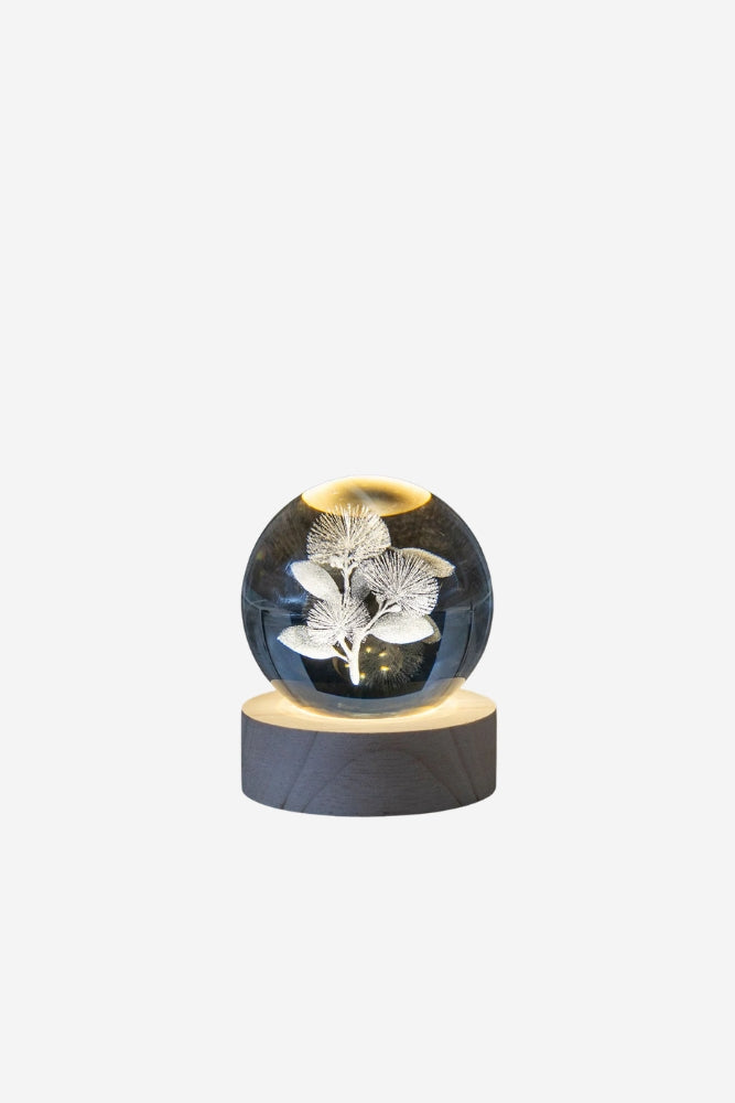 The Fantail LED Globe showcases a 3D laser-engraved design within a 60mm glass sphere, capturing the lively form of this much-loved native bird. Resting on a wooden LED base, the engraving is softly illuminated to highlight its fine details. USB powered with an in-line switch, and presented in a gift box.