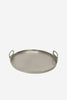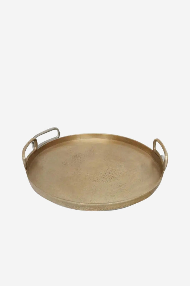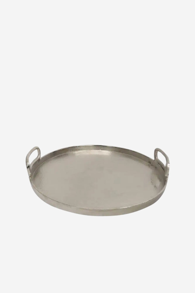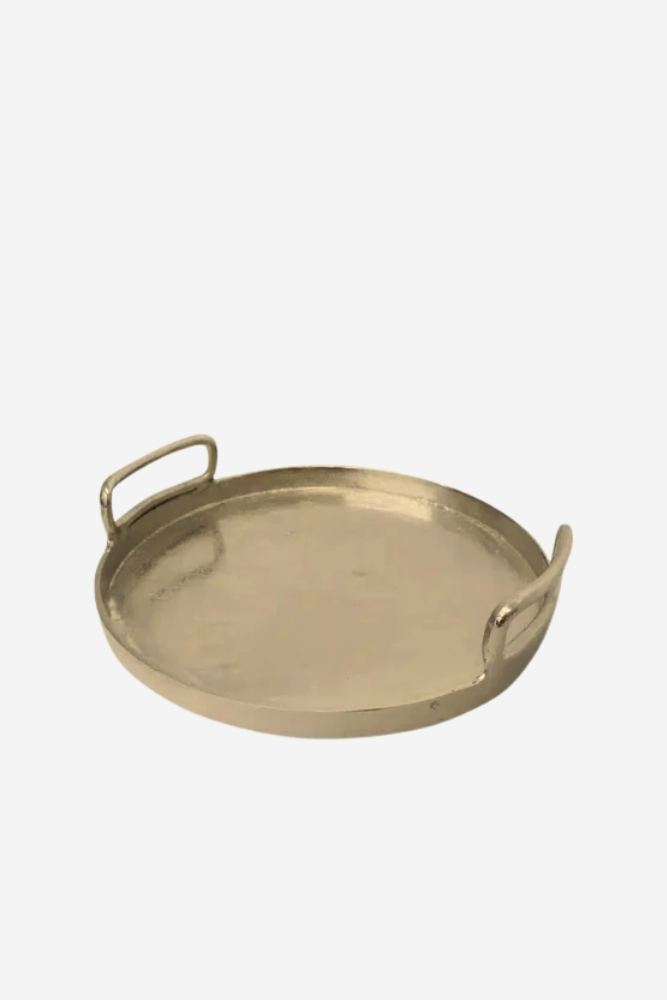 Measuring 40x40x8cm, this elegant round collar tray is crafted from either raw silver aluminium or raw gold aluminium, combining style with practicality. Perfect for displaying decor or serving with grace.