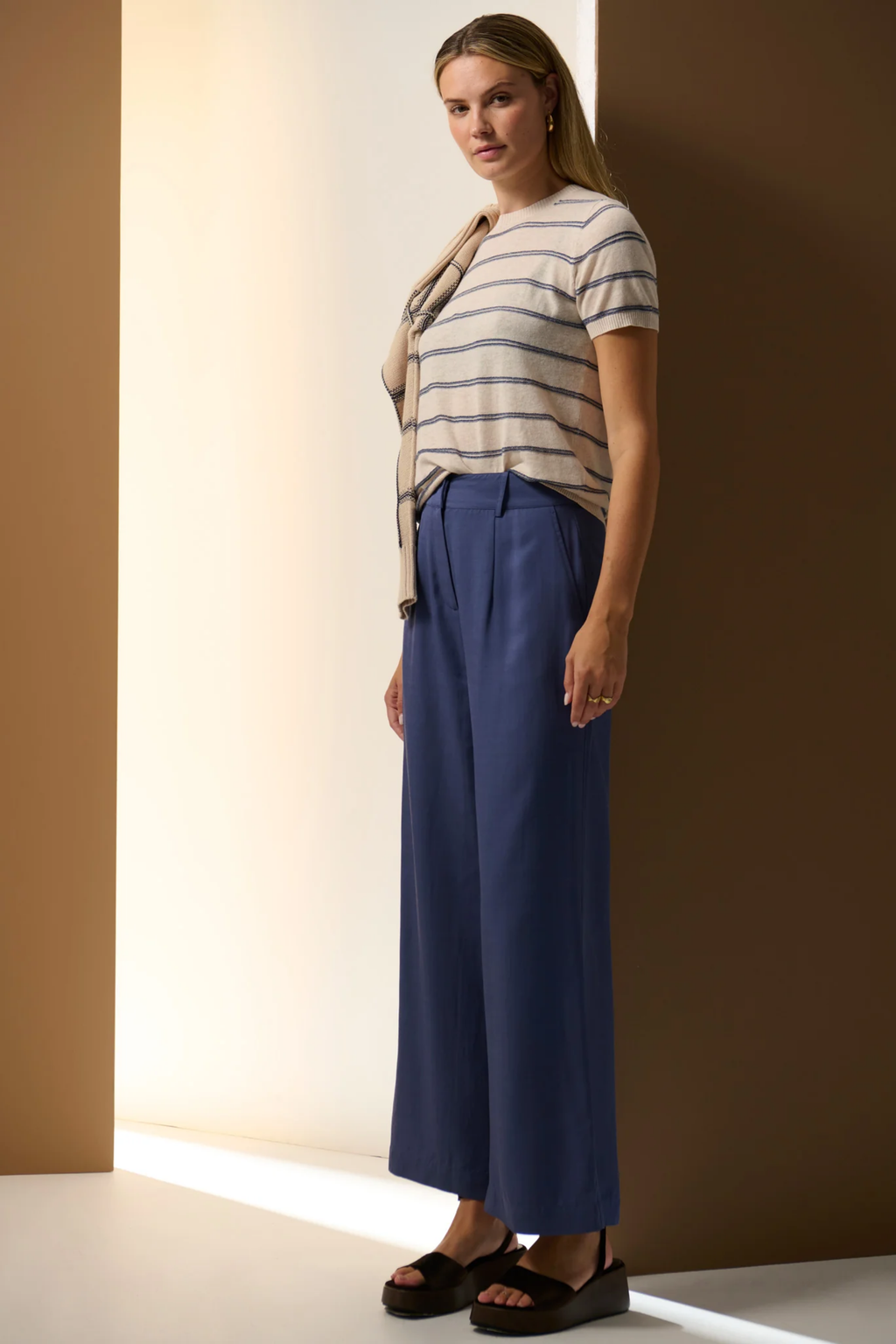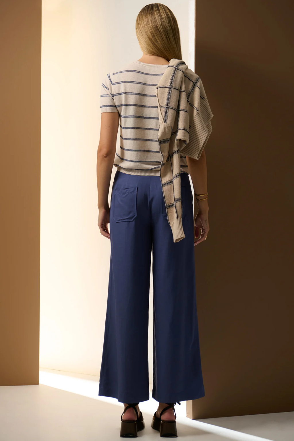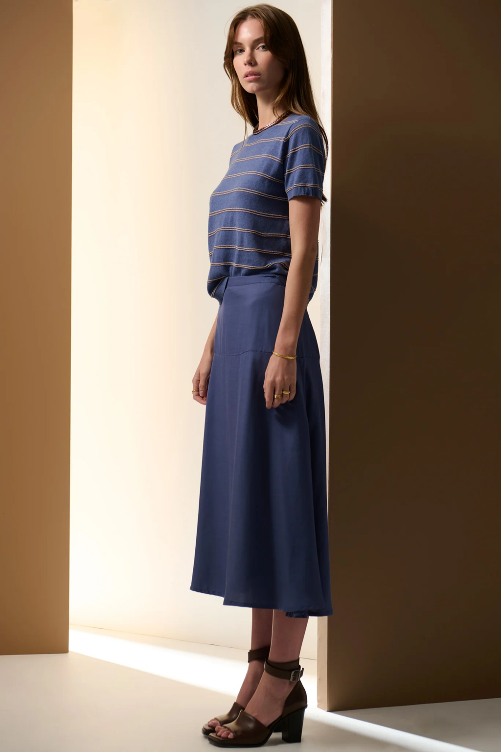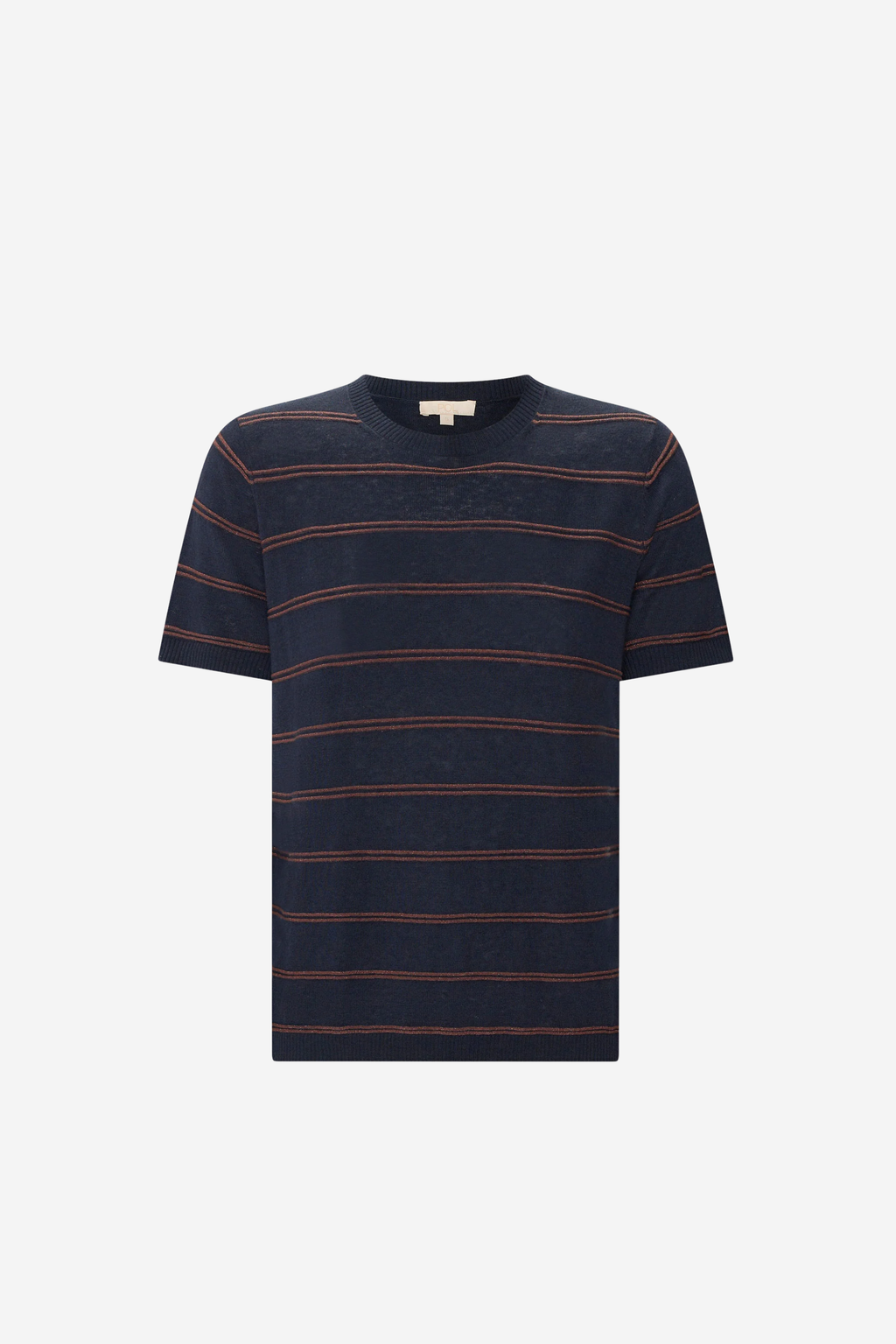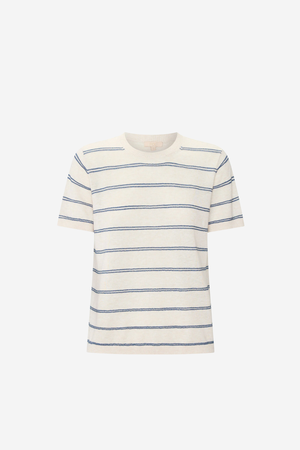 We love the easy elevated styling of the Sable Stripe Knit Tee. Featuring a round neckline and a classic fit, this cotton blend style features tiny lurex double stripes to bring a little sparkle into your everyday.