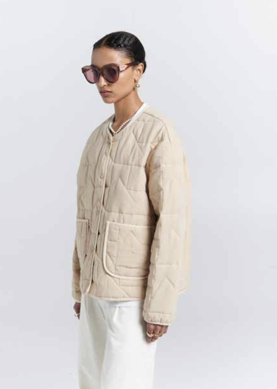 The Quilted Drift Jacket is crafted from soft, padded KW monogram quilting and cut in a clean, boxy silhouette that layers with ease. Finished with snap fastenings, contrast binding, and two patch pockets, it balances practicality with polish. A throw-on-and-go piece you'll keep reaching for season after season.