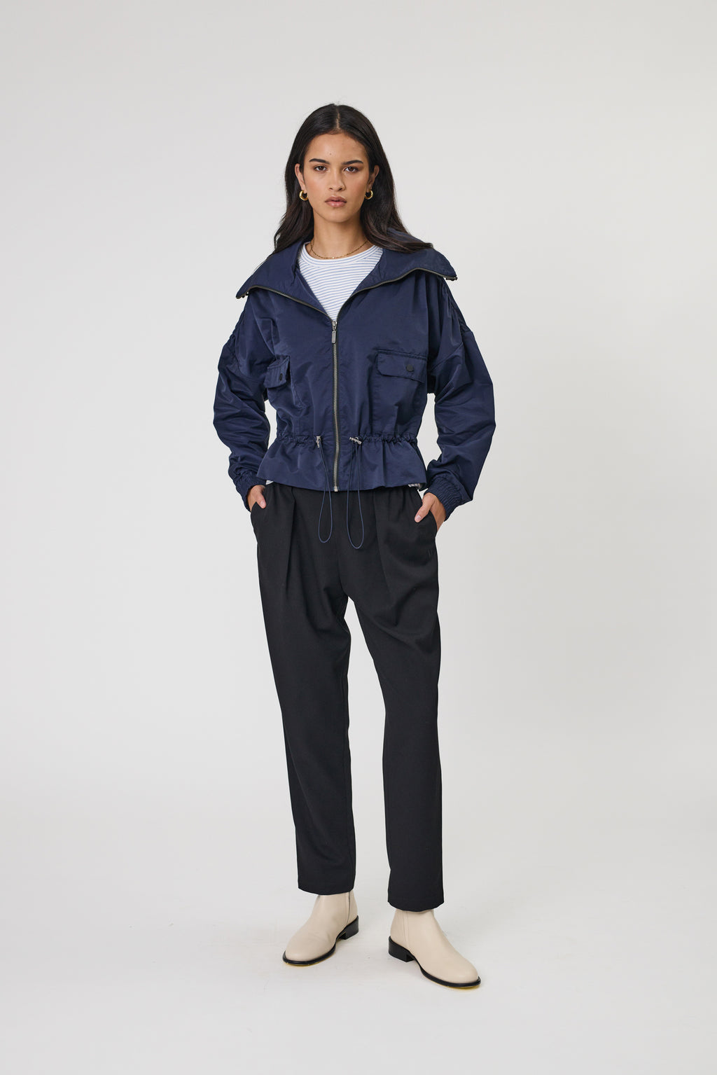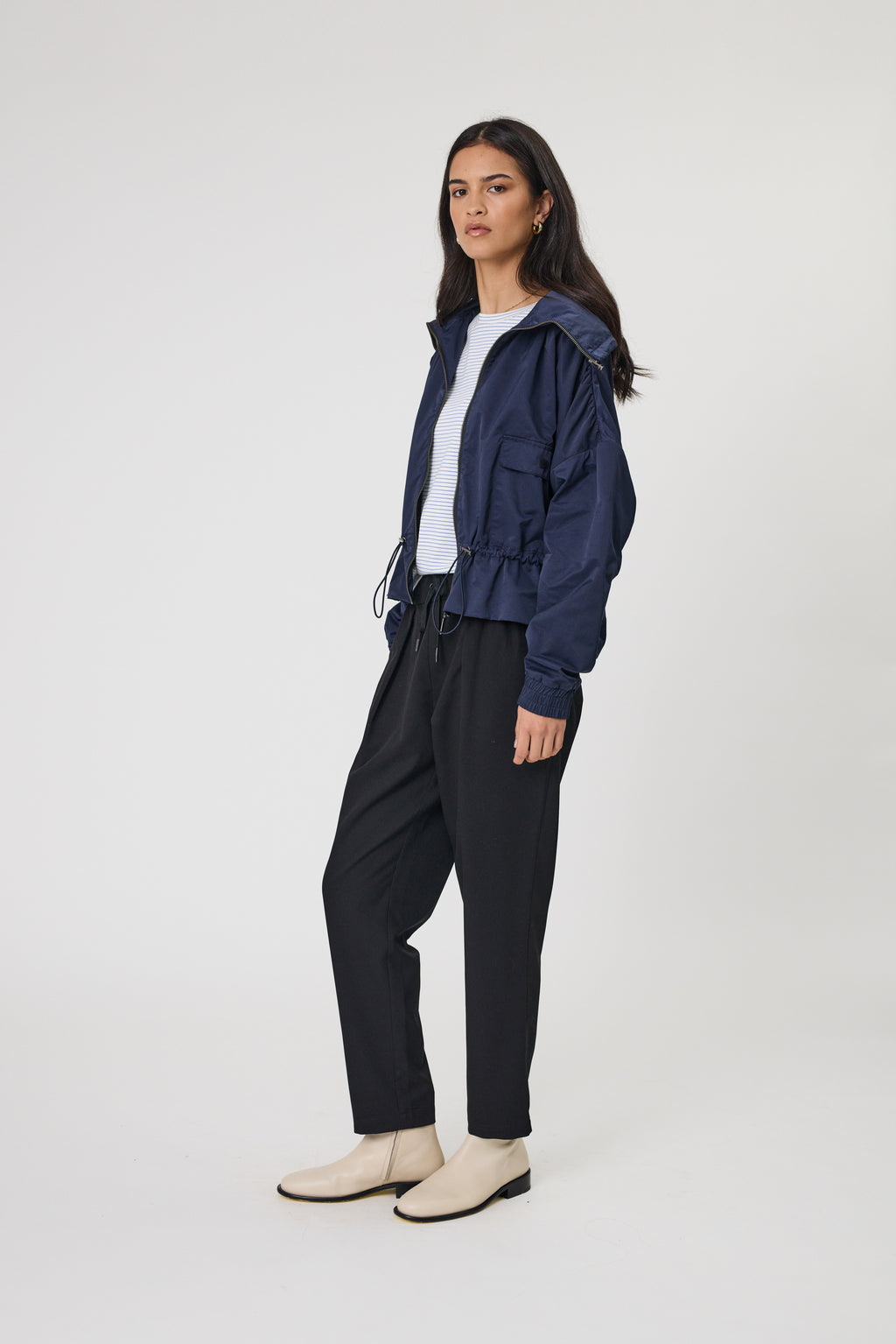 A Marlow best-seller — our grab-it-and go trans-seasonal jacket, designed for everyday wear and the perfect layer for all seasons. Unexpected details pull fashion-meets-function with its high neck packed-in hood, zip front and an adjustable cinched waist, finished off with neat elasticated cuffs. Front patch pocket detailing, give it a utility feel, keeping you stylish regardless of the forecast. It’s the perfect layer to take you to and from the studio to the street. Layer it over dresses or pair it with your favourite Marlow activewear for an everyday sports luxe vibe.