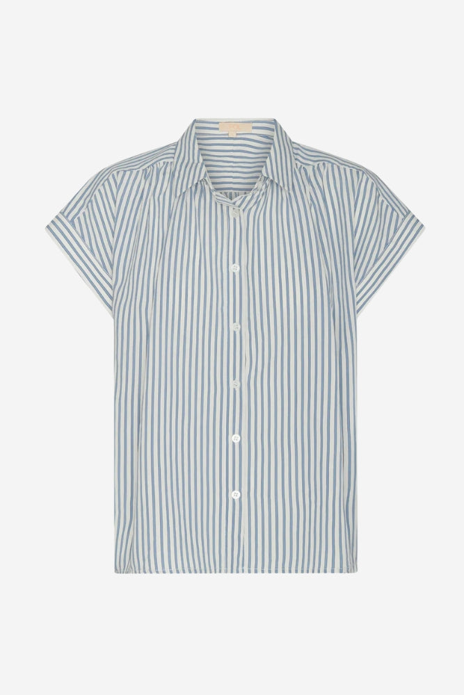 Featuring a short cap sleeve in an elevated striped shirting, the Vera Cap Sleeve Shirt is perfect for dressing up or down.