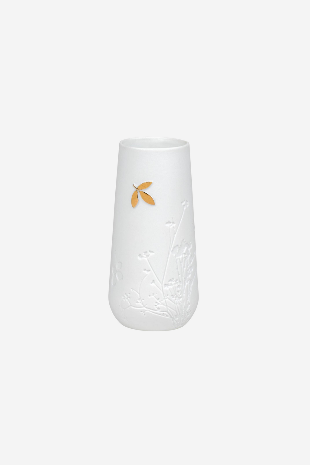 Made from white porcelain, unglazed on the outside and glazed on the inside, with golden decal.