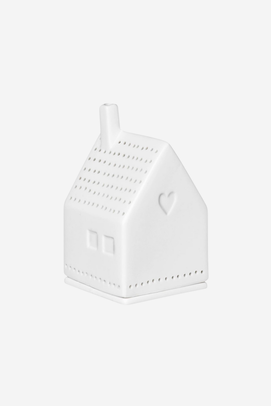 So simple and eye catching! These elegant little houses come to life when placed over a tea light candle – the windows glow and smoke will drift from the chimney! Each house comes with a porcelain base and lift-off house. Simply place a tealight candle or battery tealight candle on the base and place the house back on top.