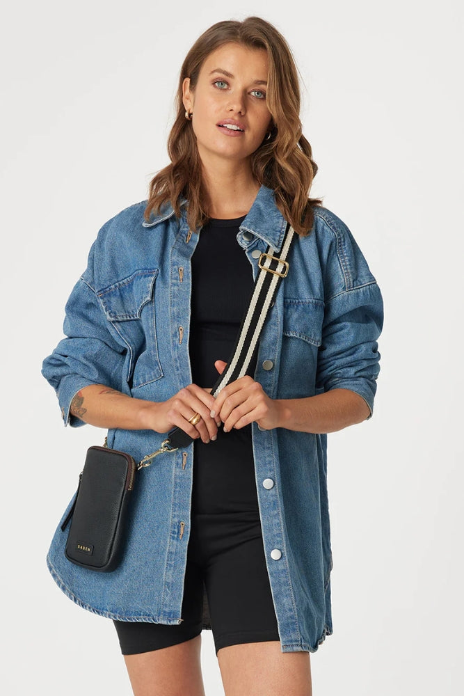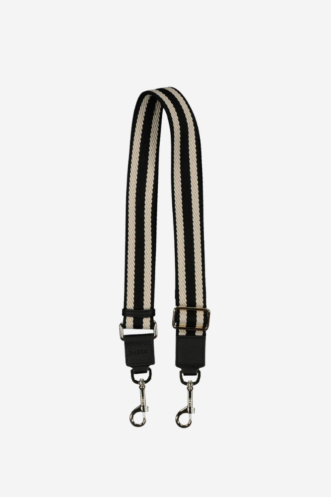 Transform any bag with your choice of a feature strap. Cotton webbing with leather trim. Personalise your Saben the way you like it by adding colour or keeping it all black.