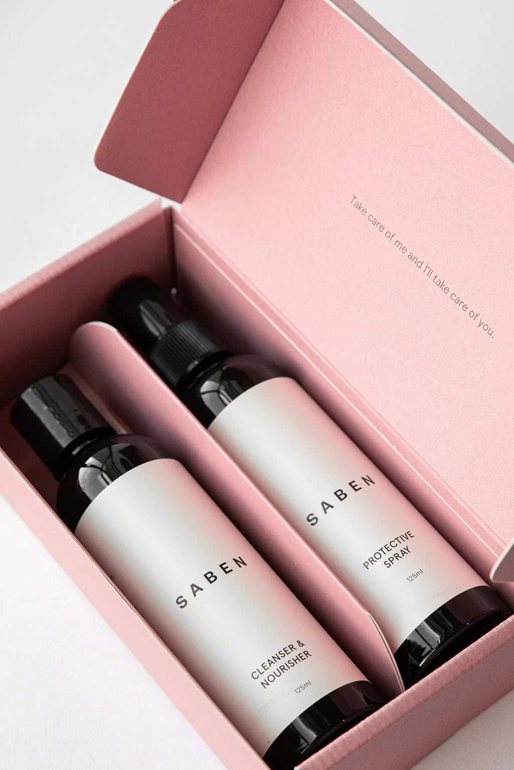 Keep your Saben leather pieces looking fresh with the complete Saben Leather Care Set.