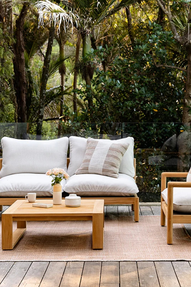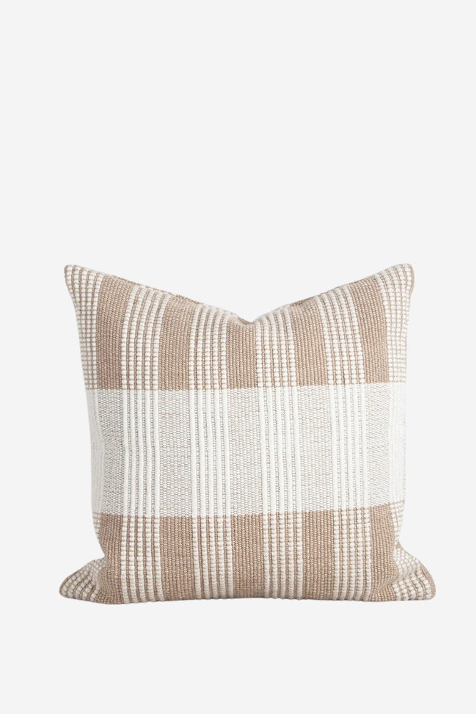 Ribbed patterning and warm hues of cumin combine in the woven composition of the Waverly cushion. Crafted from soft, recycled PET fibre, the design and tactile nature of this piece seamlessly extends the feel of interior spaces to the outdoors. This piece works just as well styled indoors, especially in areas exposed to sunlight.