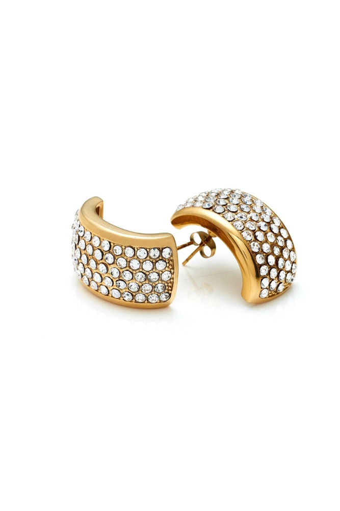 Get ready to shine with the 'It' accessory of the season - the Diva Statement Earrings. Perfect for the party season or a night out with friends, these large, vintage-inspired half hoops are encrusted with clear cubic zirconia stones that sparkle like diamonds and optimise 90s cool-girl-vibes.