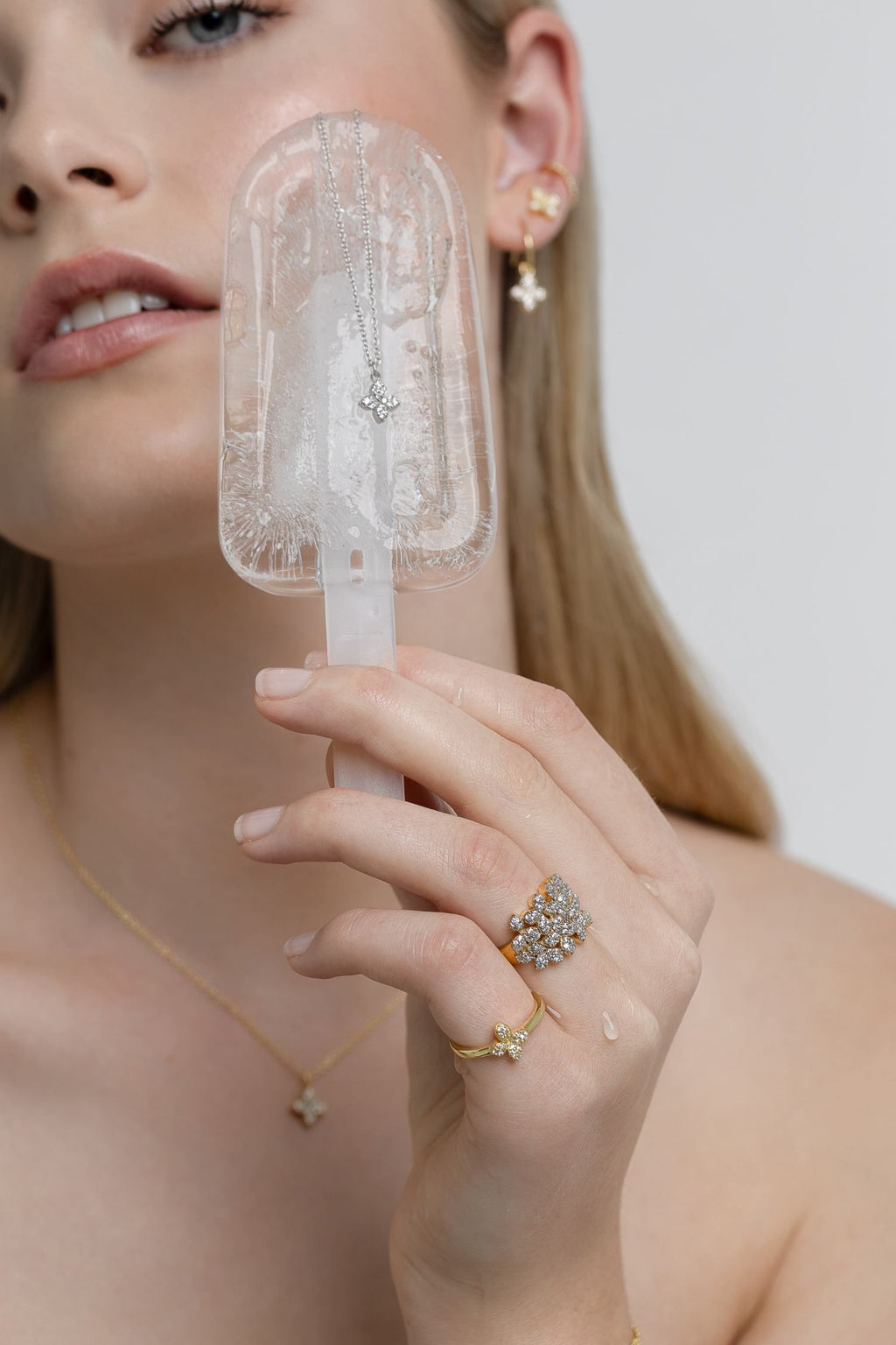 Flora ring in clear cubic zirconias, on 14k gold plated sterling silver - Medium (US7).