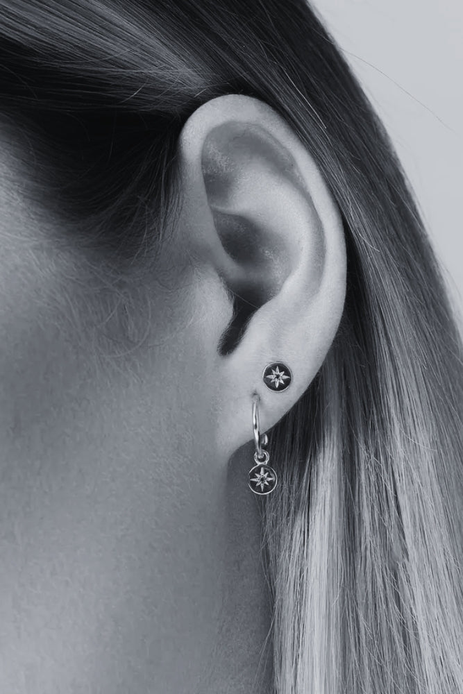 These artisan-made Petite North Star hoops are crafted in , featuring our signature spike hoop design paired with a round North Star pendant and genuine blue sapphire centre.