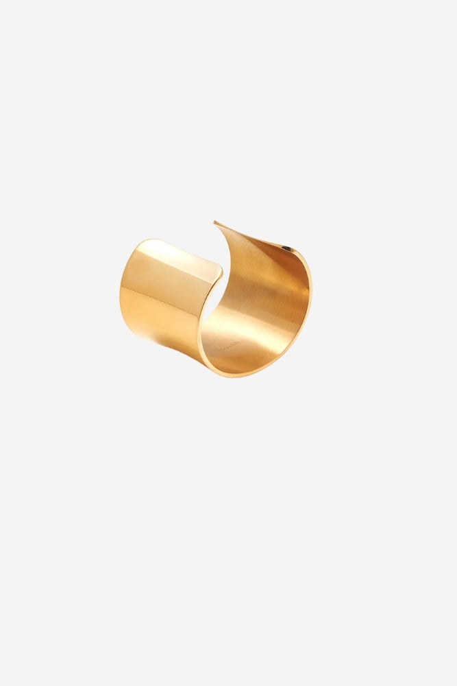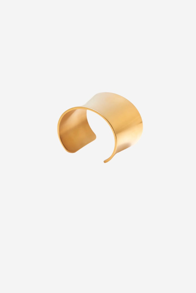 Crafted with super luxurious 14k gold-plating, this high shine cuff brings a touch of opulence to any outfit. Its durable, hypoallergenic, and tarnish-resistant stainless steel construction ensures it retains its beauty over time.