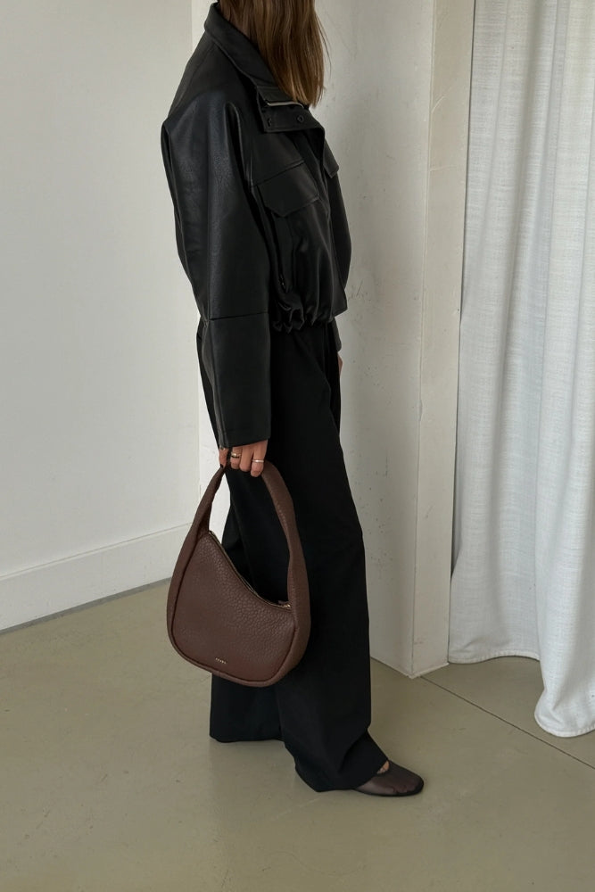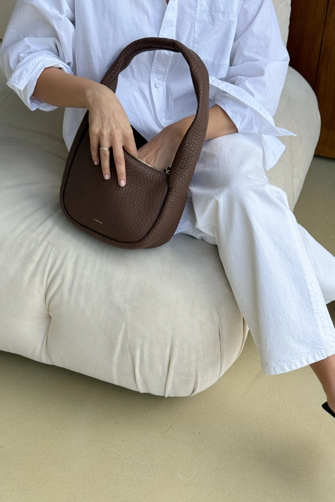 This thoughtfully sized piece delivers effortless style and practical functionality in this elegant silhouette. Lovingly crafted in premium pebbled leather, for those who appreciate refined minimalism with a modern twist.