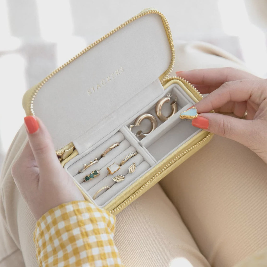 The travel accessory you never knew you needed. Our best selling travel jewellery box, the Medium Travel Jewellery Box is a must for your travels, featuring a soft velvet lining to keep your special pieces safe on-the-move. Take with you on your weekend break or holiday abroad so you can take your favourite jewellery pieces with you wherever you go! The divider is also removable to house those larger statement earrings of yours!