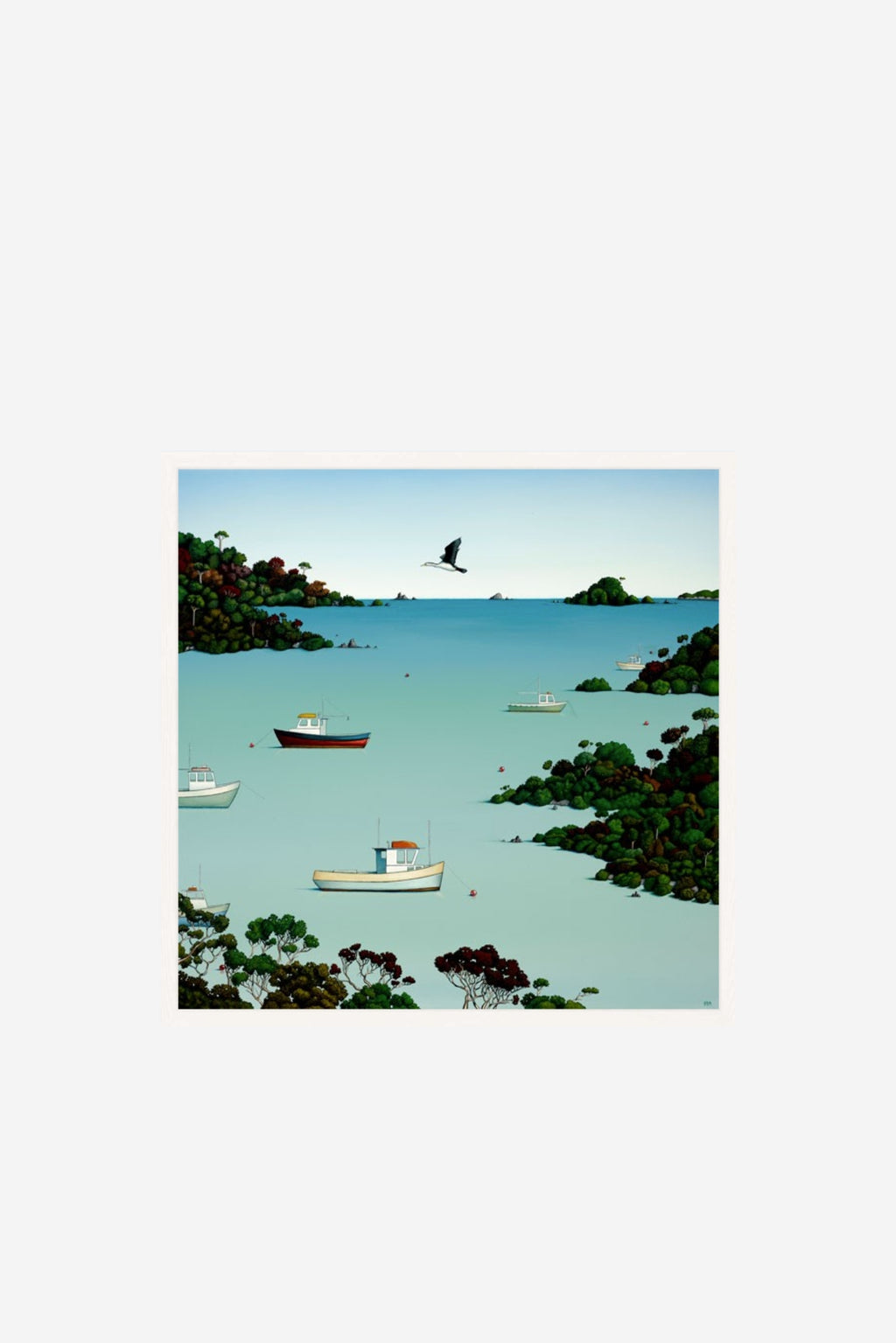 Hamish's style is characterised by clean precise imagery often depicting stylised representational New Zealand landscapes and often incorporating iconic architecture. His interest in the relationship between the Landscape and human intervention is often present and Hamish endeavours to portray this in a contemporary manner. He is fond of looking through his rose tinted glasses at times gone by. His work has a feeling of space and a sense of the serene created by leaving out unnecessary imagery creating a stripped back essential image.