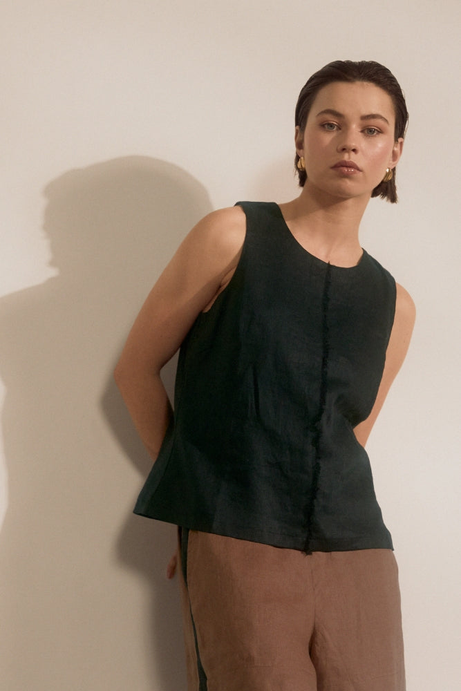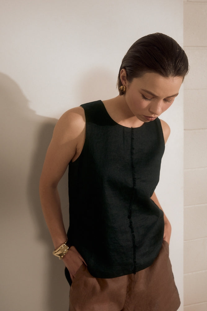 Based on the highly coveted Florence Dress, the Barcelona Tank is set to become a new summer favourite. Crafted from a luxurious, pure linen fabrication, this lightweight and breathable tank offers a relaxed fit and elevated design with a frayed centre-front trim detail. With a classic scoop neckline and sleek silhouette, it’s guaranteed to easily transition across all occasions, from work to summer BBQs. For an effortlessly coordinated look, style it with the Barcelona Skirt or Shorts, or pair it back with linen pants for an elevated everyday outfit.