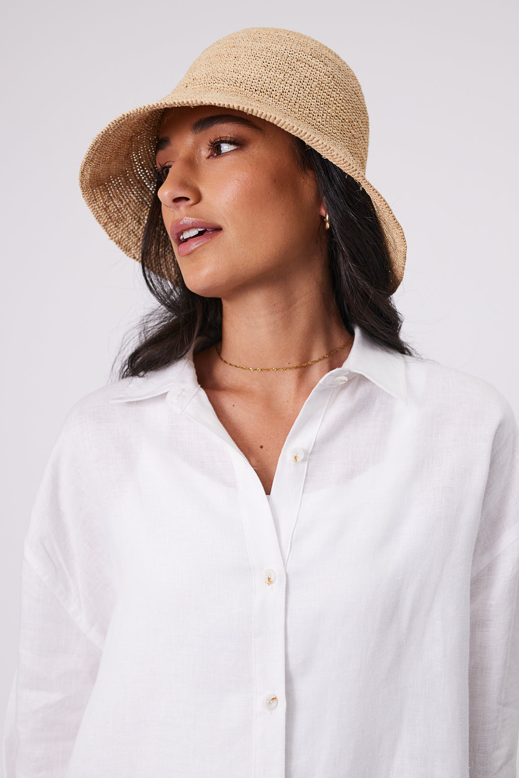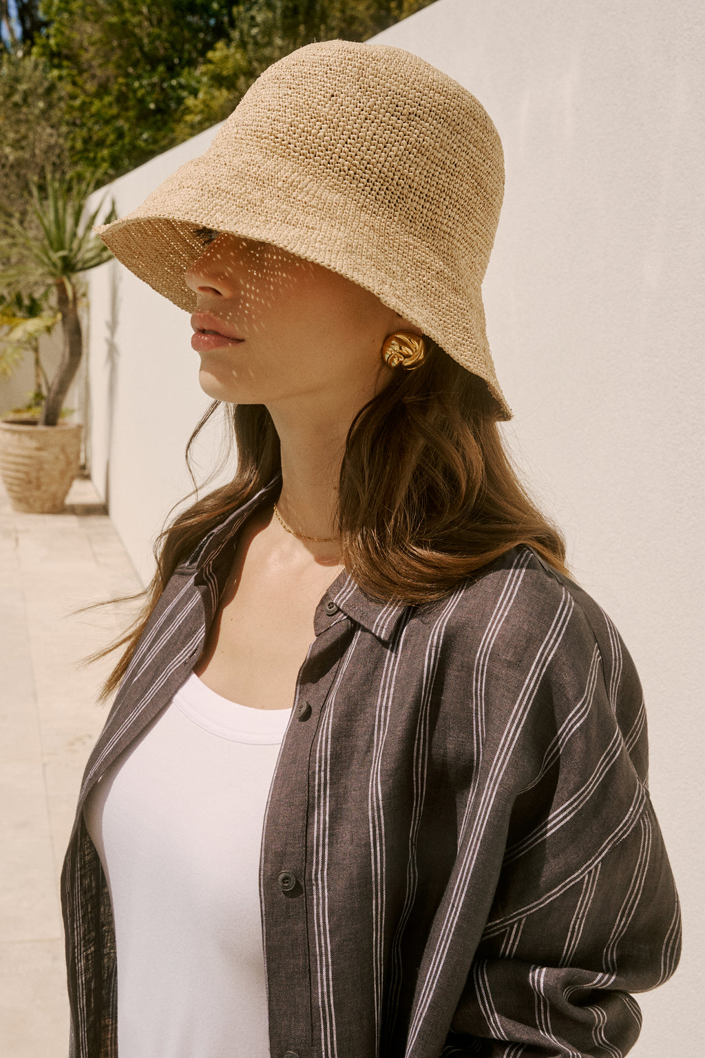 The beautifully handwoven Capri Bucket Hat is the perfect accessory for the warmer months. Crafted by hand in Madagascar using 100% Straw Raffia, making each piece unique and one of a kind. Breathable yet chic, this hat features a herringbone cotton twill tape inside with a tie that can be adjusted, giving you the perfect fit. The ideal hat to take on holiday, simply roll up in your bag to save on space.