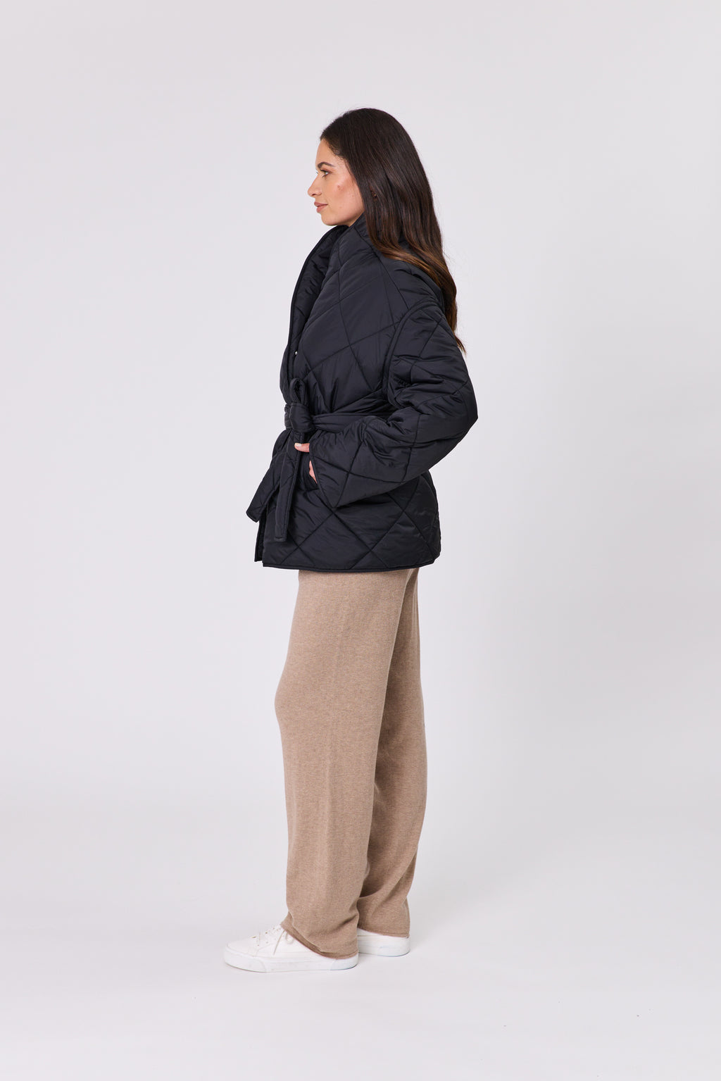 Looking for an elevated yet chic quilted jacket this season? We just know you will fall in love with the new Montana Wrap Coat. This timeless style features a slightly oversized fit, diamond quilted fabric, snap closure, front pockets and can be worn with or without the matching belt. This fully lined jacket is the perfect addition to every winter wardrobe, easy to style and layer over your favourite knit and jeans or wear over your activewear for added warmth.