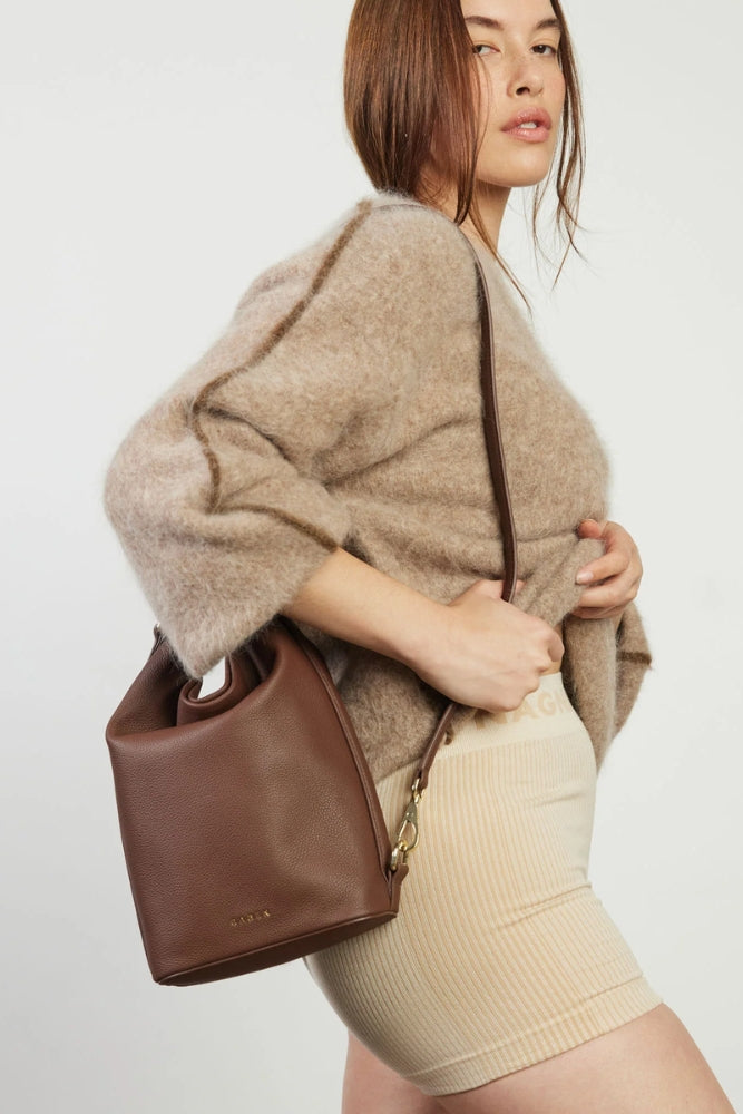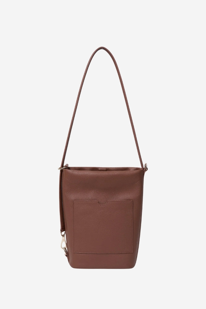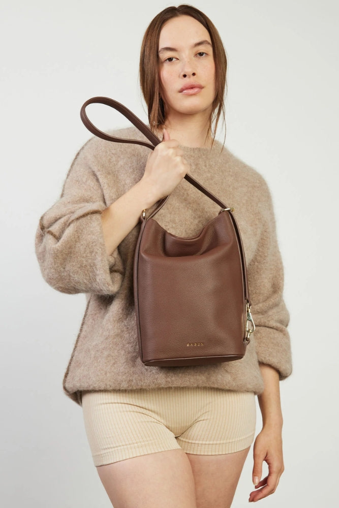 A sleek mid-sized bucket style bag; the smaller sister to our generous bucket tote June. Jojo delivers the same sophisticated functionality in a more compact form. Perfect for those who prefer to carry with intention rather than excess, while maintaining the effortless style transition from shoulder to crossbody wear. Simply unclip the signature SABEN hardware to transform it into a chic crossbody – versatility refined.