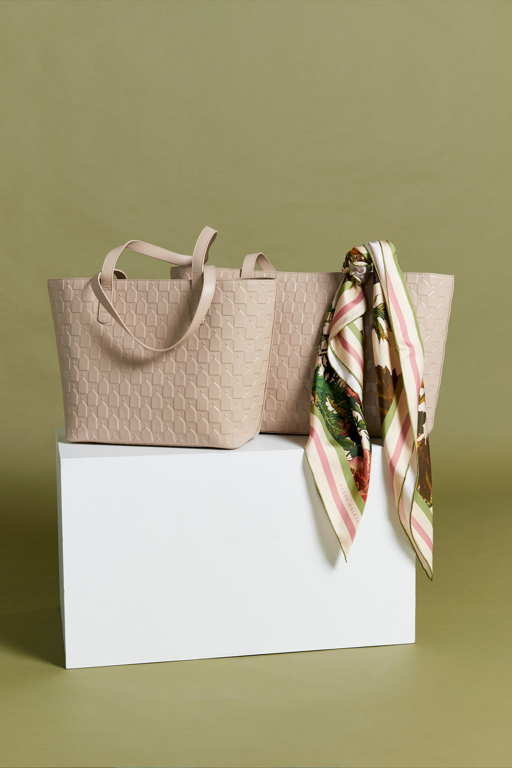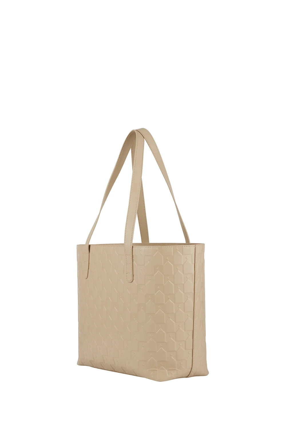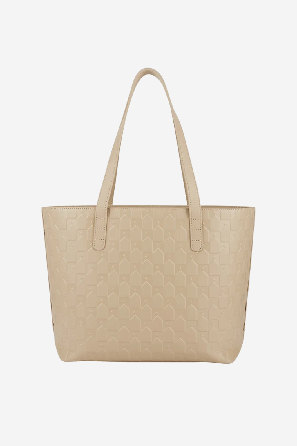 Elevate your everyday carry with the Monogram Tote, crafted from 100% nappa leather. This elegant tote features a lined interior designed for effortless organisation, including two open inner pockets and a zipper pocket for added security. With durable double straps and metal feet for stability, it combines practicality with elegance. The convenient clip closure ensures easy access to your essentials, making this tote the perfect companion for any daily adventure.