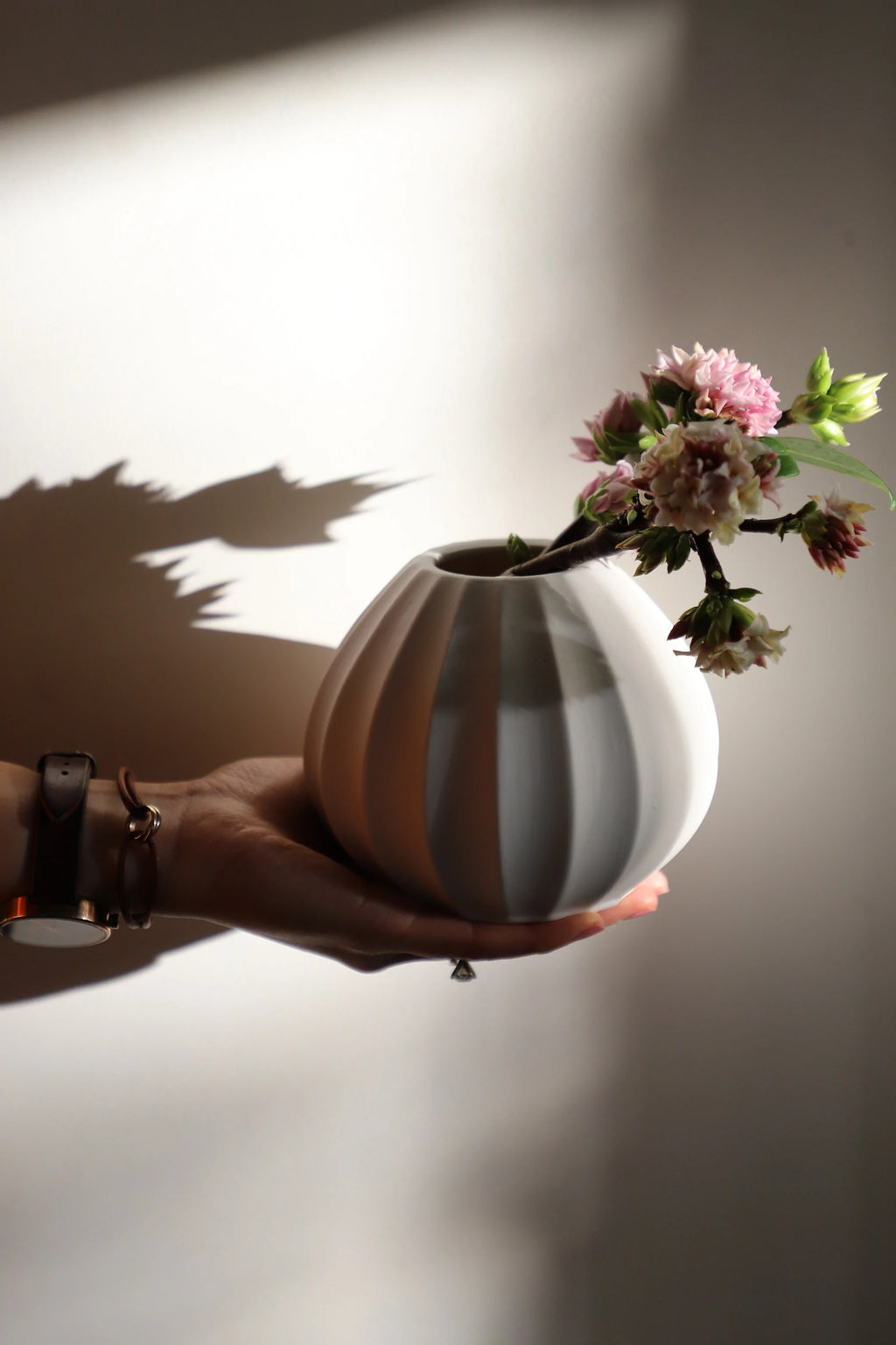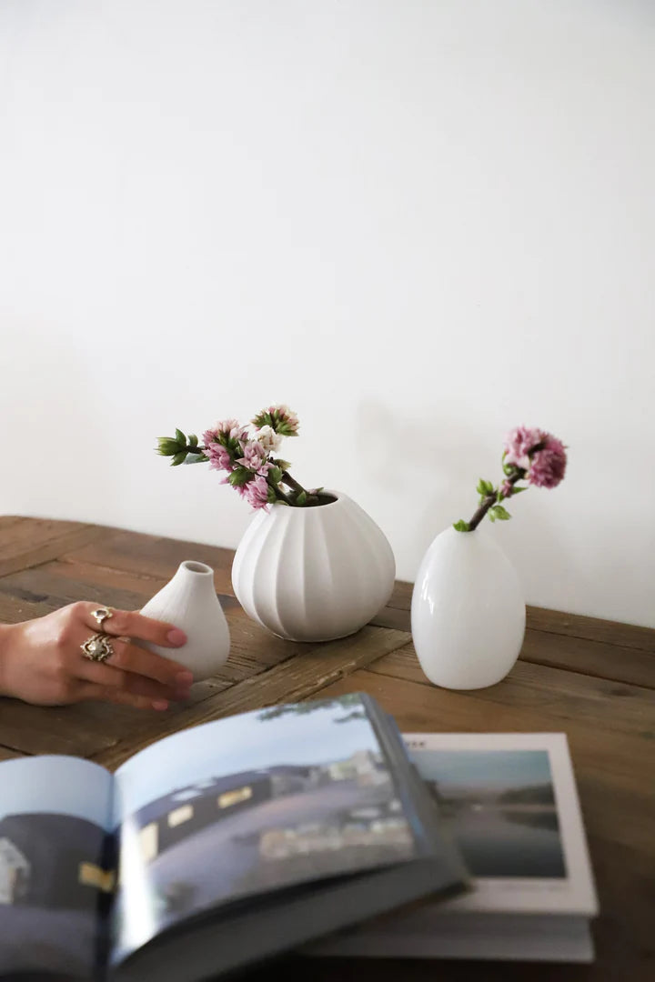 This is the perfect vase for creating small dried arrangements, with a tapered shape and artistic ridges.