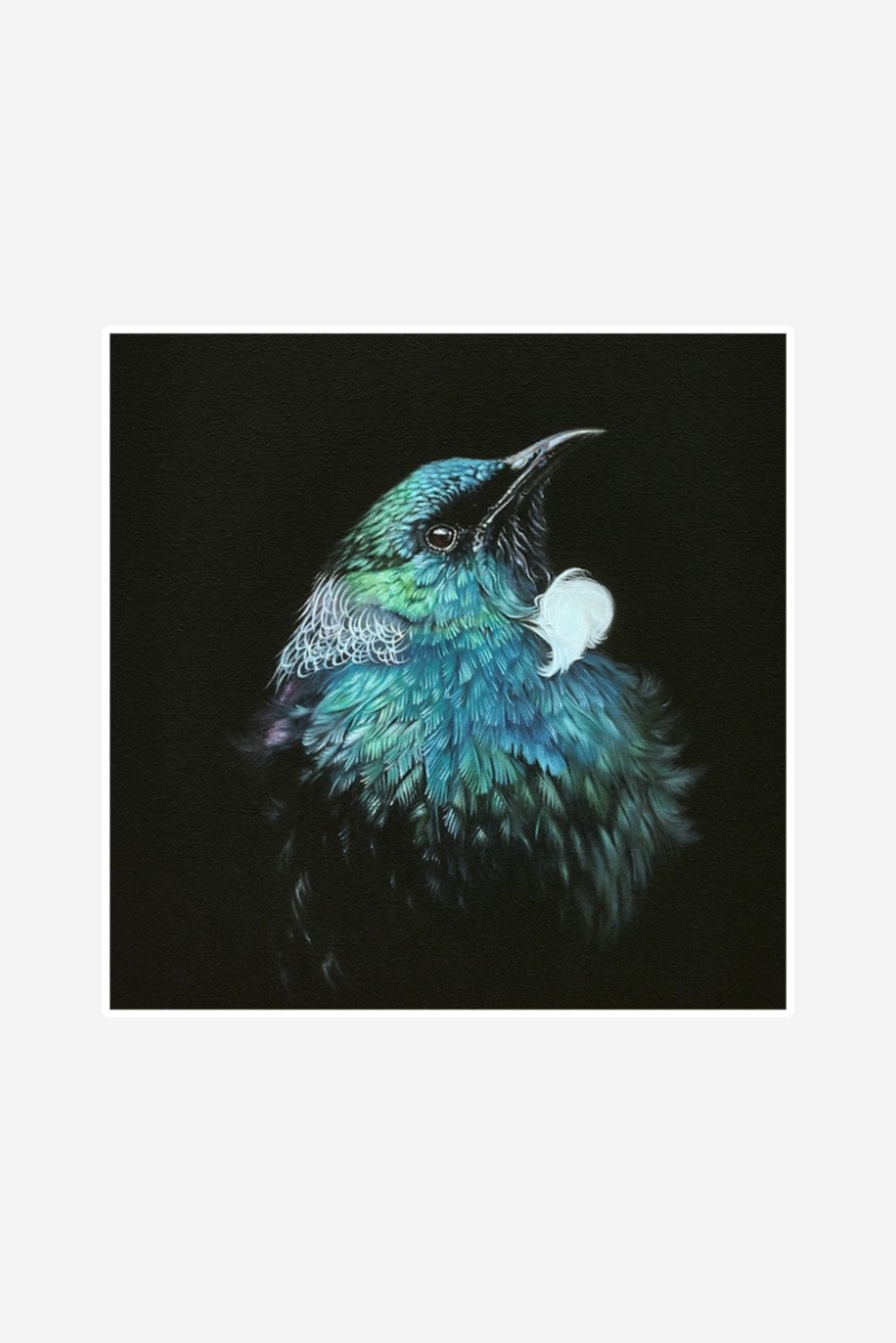 Amplifying the compassion and warmth of these heart-filled creatures, who live in the moment, I verge into portraiture. Placing Tui and Piwakawaka upon pedestals, I admire their wisdom and integrity through stories and legends which have been told. I introduce objects of sentimental value to reflect their importance in an attempt to bring awareness of their fragile existence, an ongoing essence throughout my work.