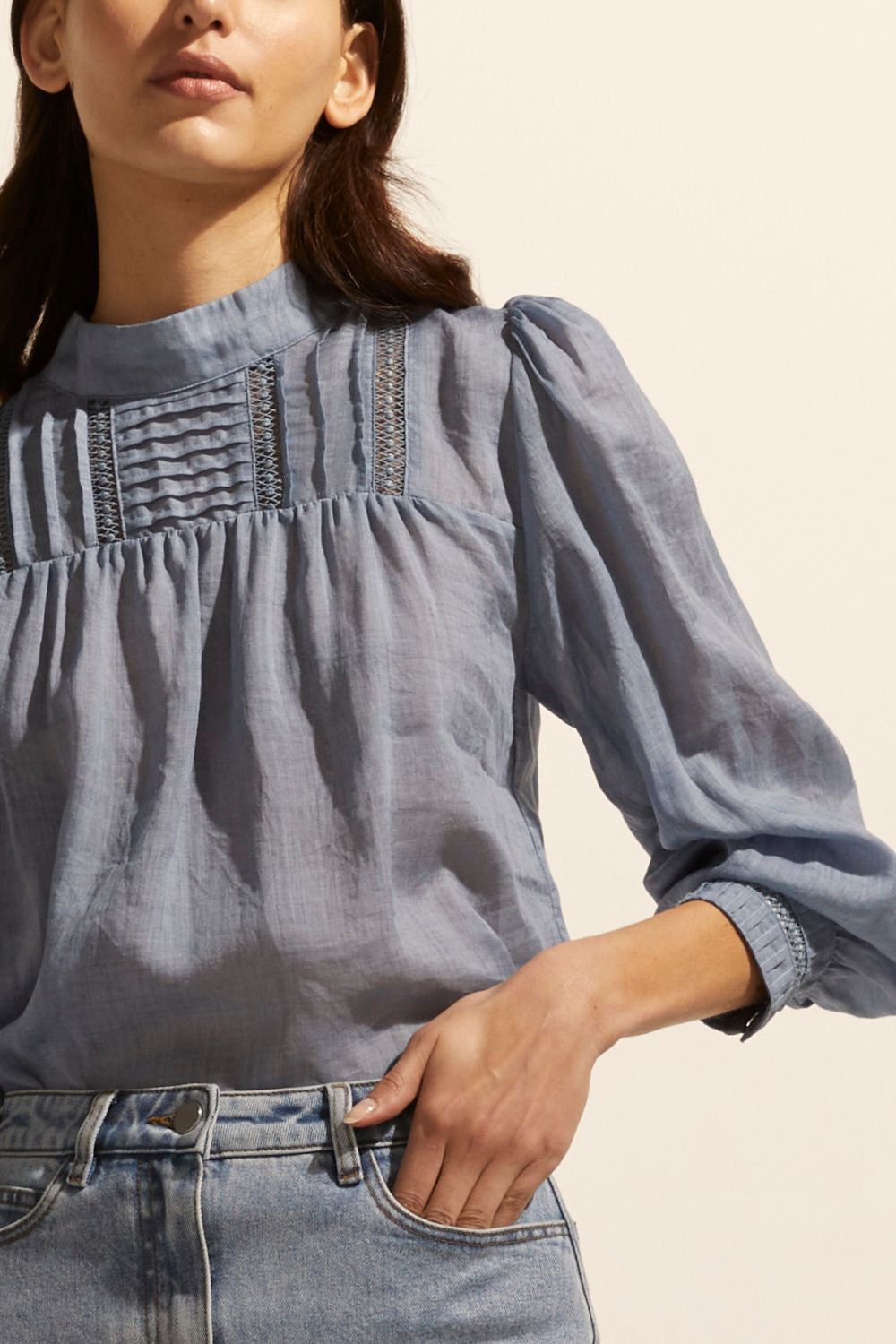Proud and polished the faze top delivers effortless sophistication for the modern woman. a high neckline is trimmed with feminine ladder lace, and a gathered sleeve and gathered cuff features add to its appeal. a modern and essential classic