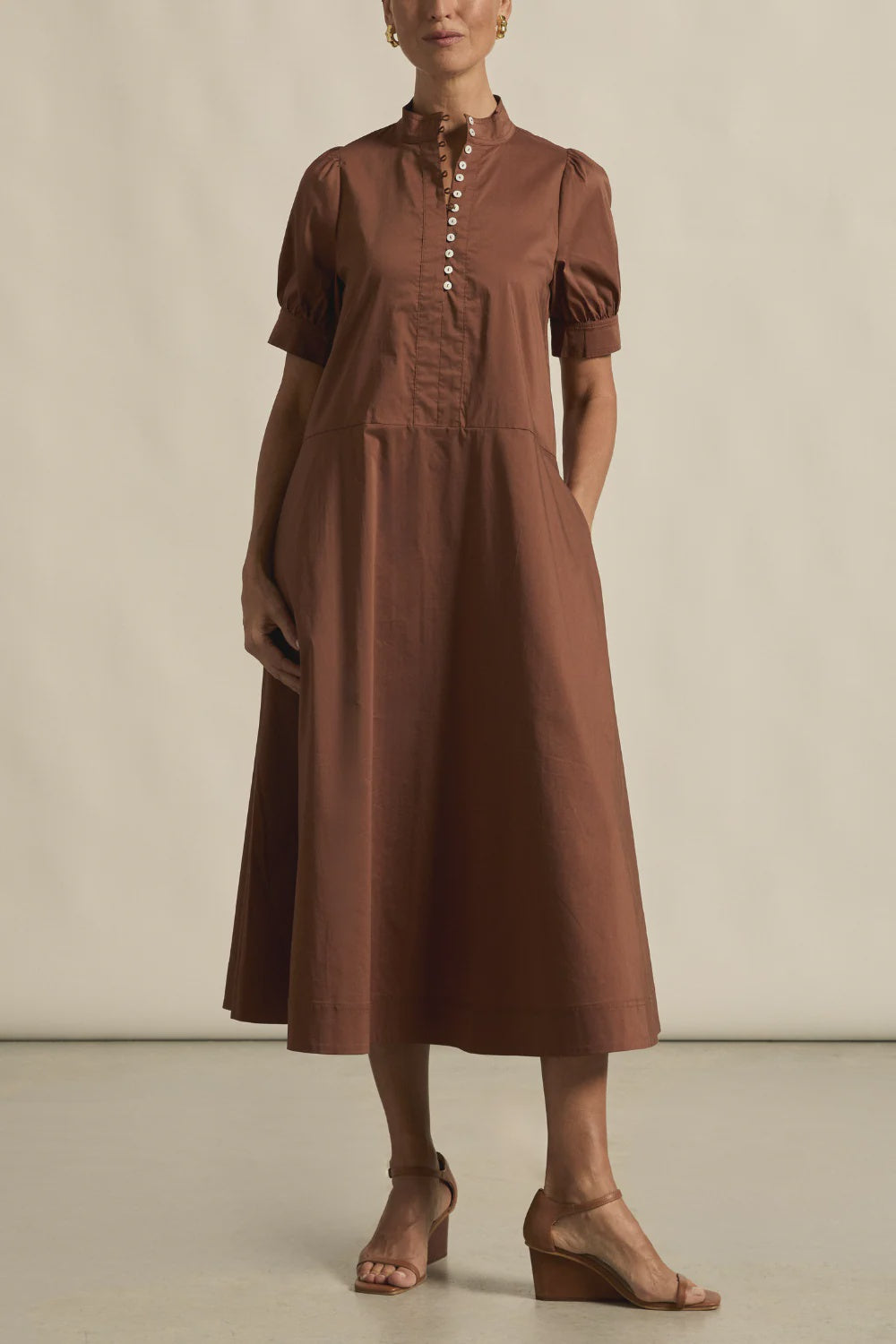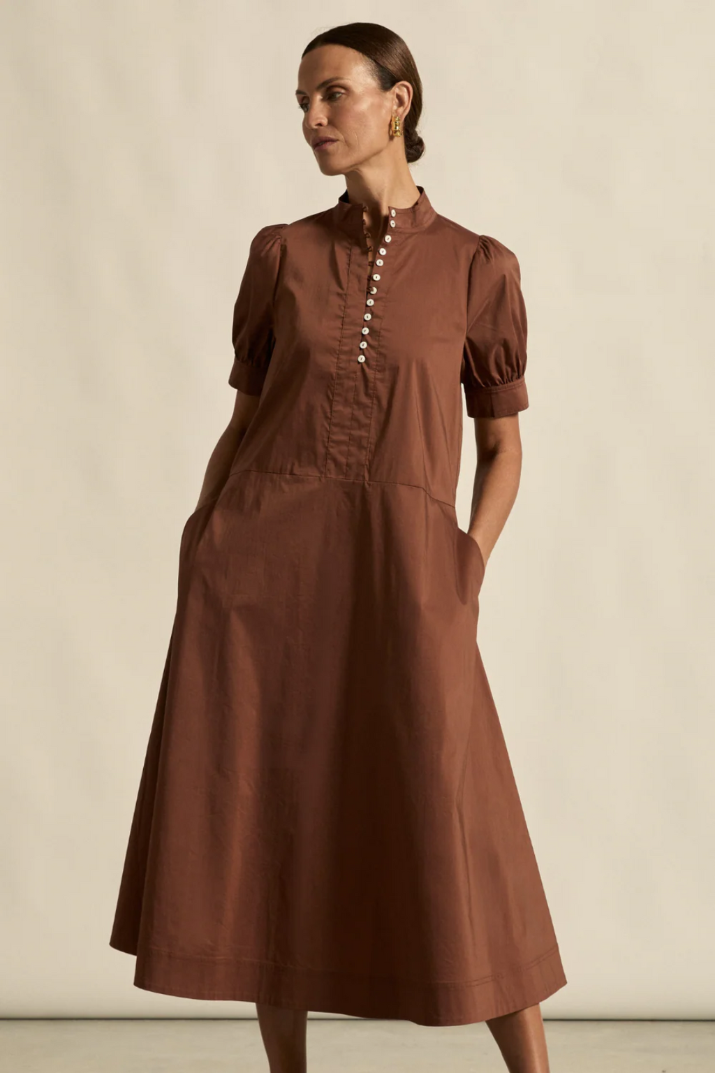 Cotton poplin, a drop waist, and refined details make this a polished go-to.