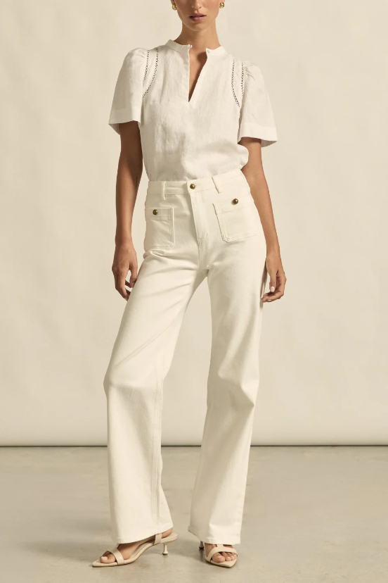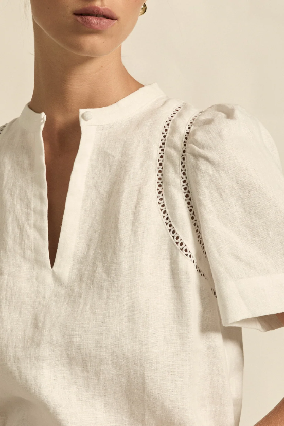 A quietly elevated blouse, The Recollect Lop combines tailoring with soft details.