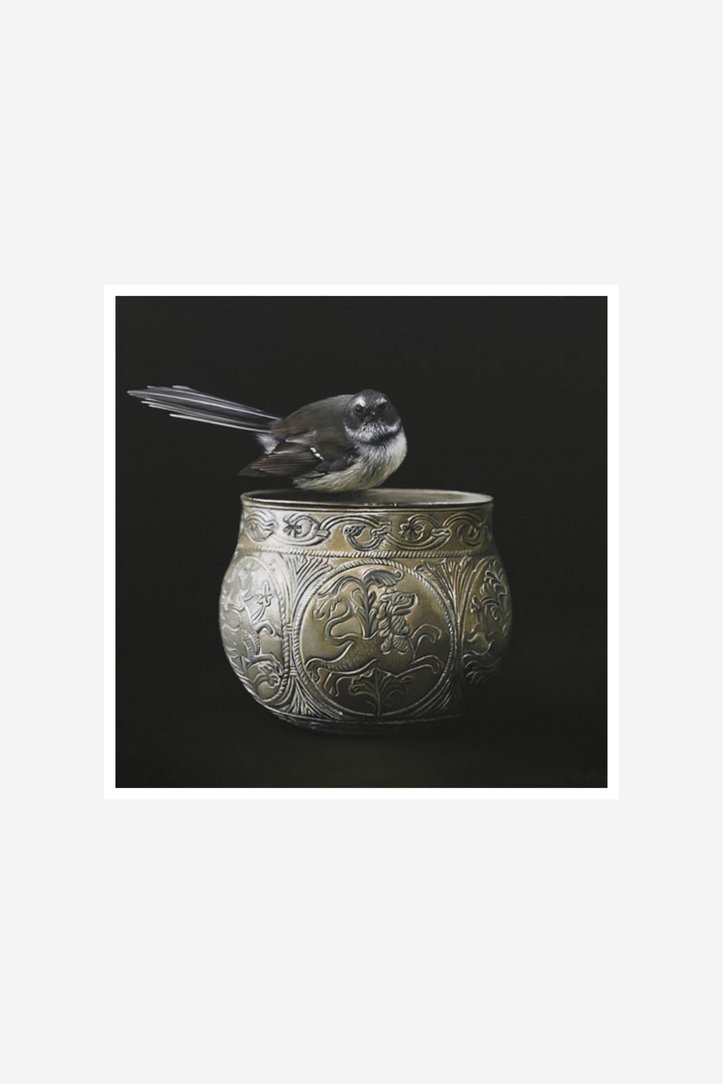 Amplifying the compassion and warmth of these heart-filled creatures, who live in the moment, I verge into portraiture. Placing Tui and Piwakawaka upon pedestals, I admire their wisdom and integrity through stories and legends which have been told. I introduce objects of sentimental value to reflect their importance in an attempt to bring awareness of their fragile existence, an ongoing essence throughout my work.