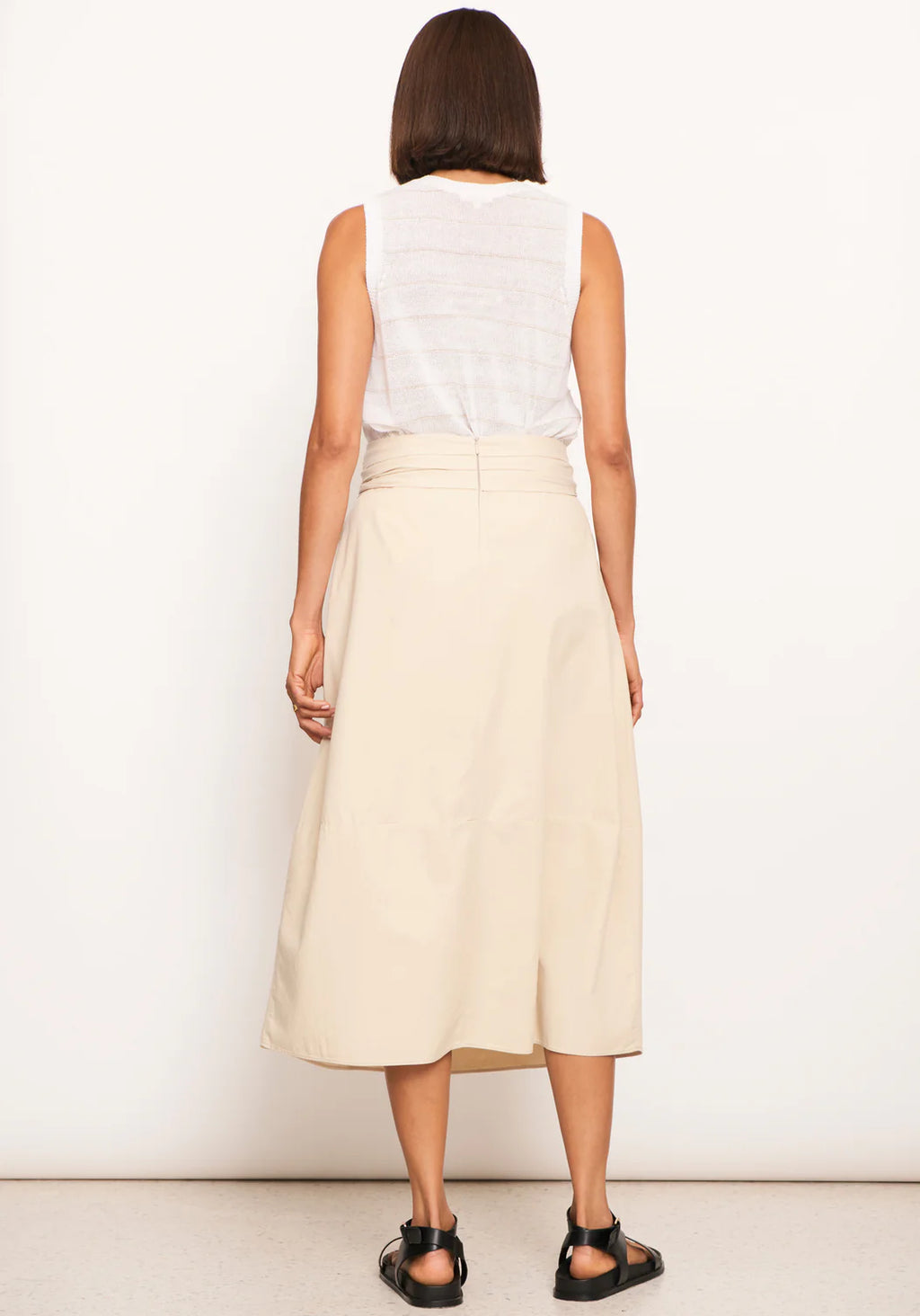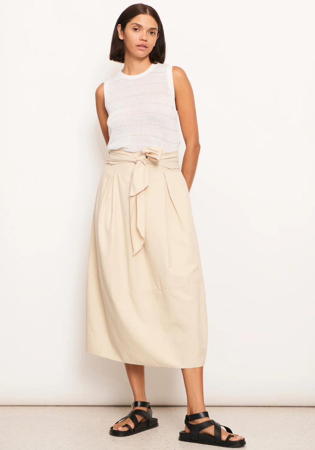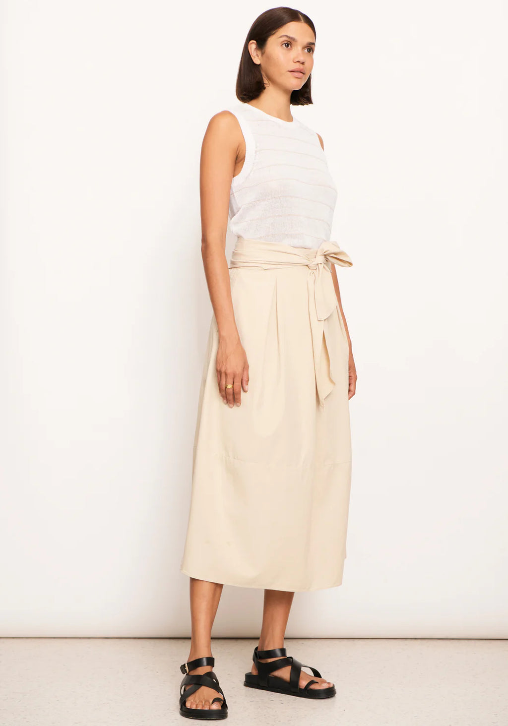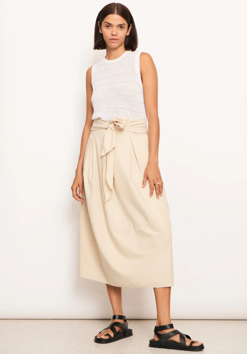 The Aina Tank has a sheer knit finish and a fine raised stripe.