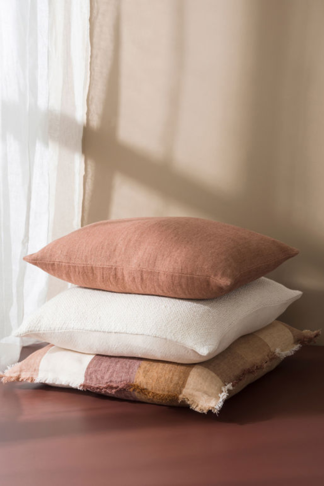 Made with 100% linen with a soft, textured finish. The edges of the cushion are finished with a raw fringe detail. Designed in New Zealand by our in-house textile designers.