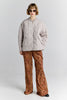 This jacket is designed with a relaxed, boxy fit for comfortable layering. Your usual size will deliver an easy, laid-back silhouette, while sizing down will offer a closer fit.
