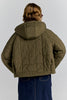 The Harvest Jacket is a lightly padded, hooded jacket with a relaxed, boxy shape designed for everyday wear. Quilted with the KW monogram, it features a contrast collar beneath a removable hood, adding subtle structure to the silhouette.