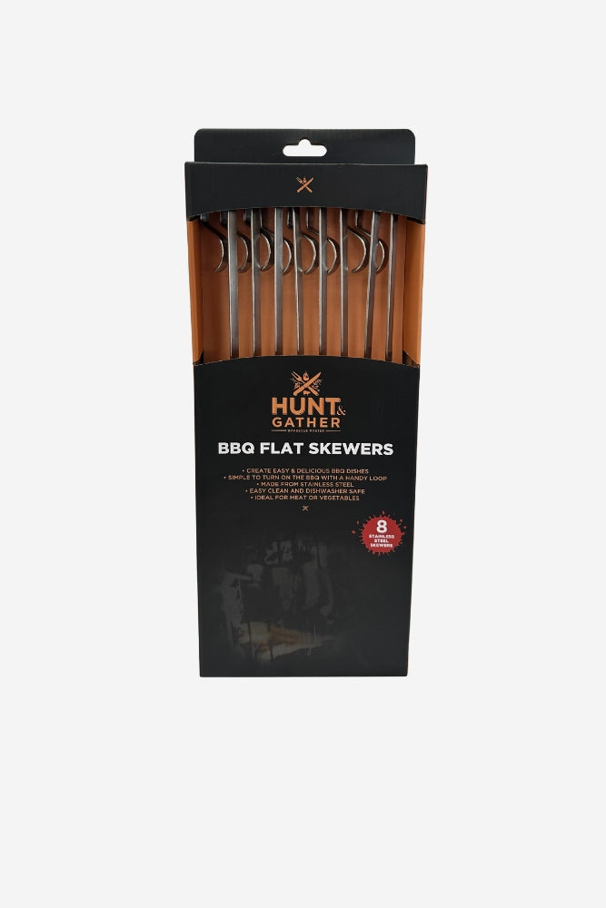 Crafted from durable, dishwasher-safe stainless steel, these flat skewers are designed to keep food securely in place—no more spinning when grilling. The flat profile supports larger cuts of meat and hearty vegetables, ensuring even cooking. Each skewer measures 31.8 cm in length and features a looped end for easy handling, turning, and serving.