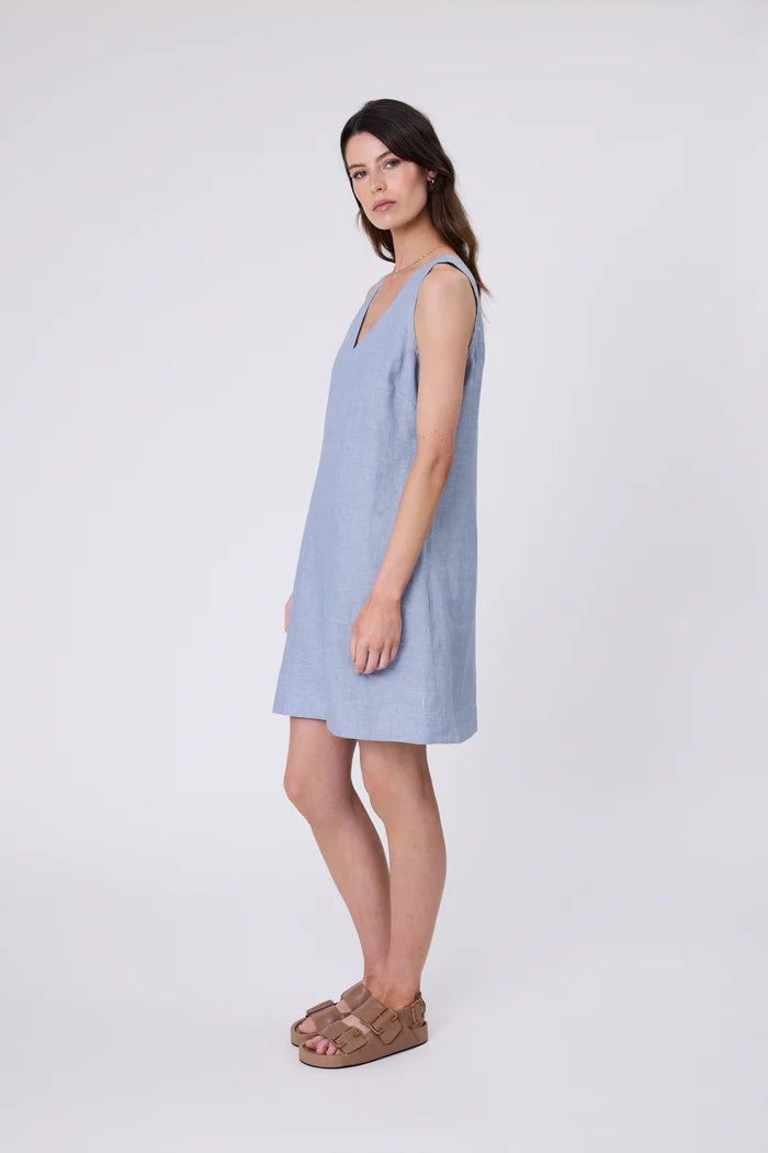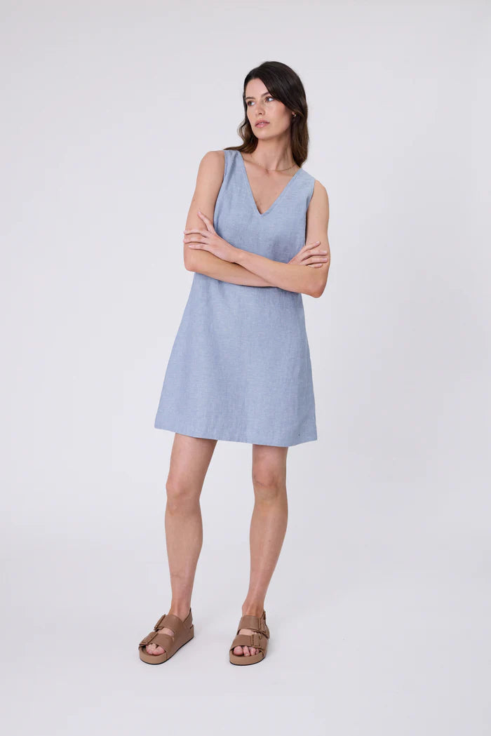 Effortless, fun and designed for easy summer dressing, the Luna Linen Dress is a versatile mini that moves with you from day to night. It’s crafted from pure European linen, offering a lightweight, breathable feel with a beautifully textured finish. Features a flattering A-line silhouette with a V-shaped neckline and back, finished with contrast ivory top stitching. Effortless yet refined, its works for any occasion - wear it with sneakers for relaxed weekends, slides for a summer BBQs, or heeled sandals for drinks with friends.