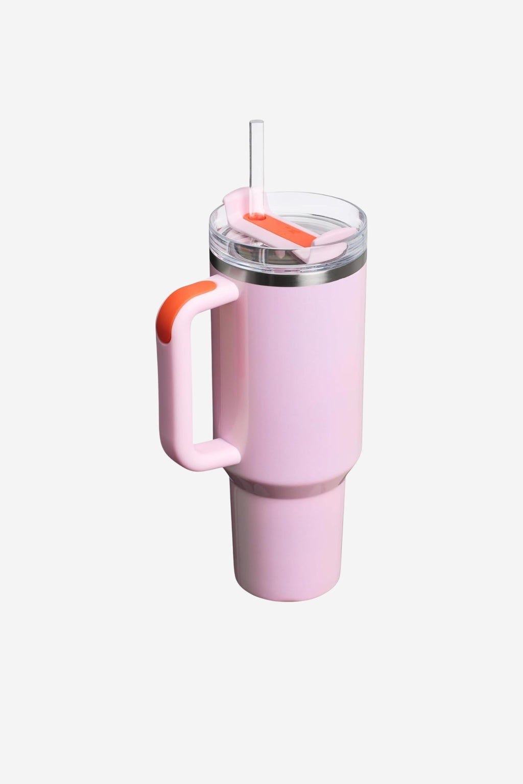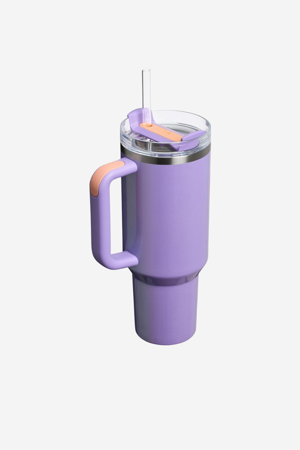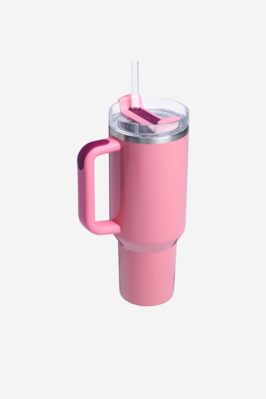 This travel tumbler is just what you need for all-day hydration. Take it with you to a high-intensity workout or on an extra-long commute to keep your drink cold for hours. The lid features a rotating cover with three positions: a straw opening, a wide mouth for drinking, and a full-cover top to resist splashes. The larger size even fits comfortably in your vehicle’s cup holder and comes with a rugged handle for carrying.