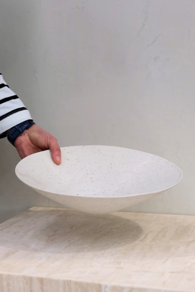 Simple, sculptural, and quietly functional. The Tomm Bowl brings a soft balance of form and texture with its wide, shallow shape and gentle speckled finish. Designed to sit beautifully on its own or in use — for fruit, shared meals, or everyday objects. Made with care and intention, it’s a piece that feels at home in any space.